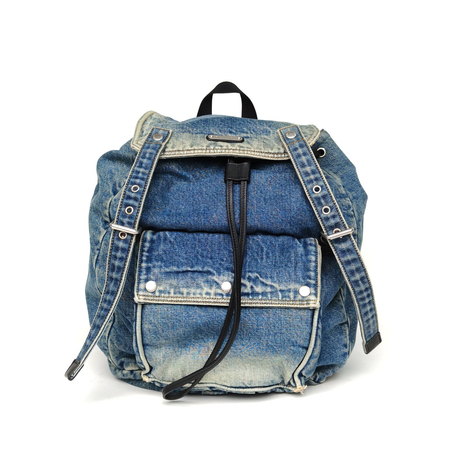 SAINT LAURENT Denim Blue Denim Yves Saint Laurent Distressed Denim Backpack