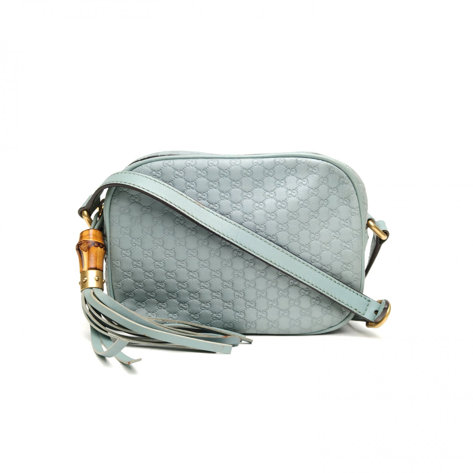GUCCI Green Gold Hardware Bamboo Tassel Embossed Camera Bag