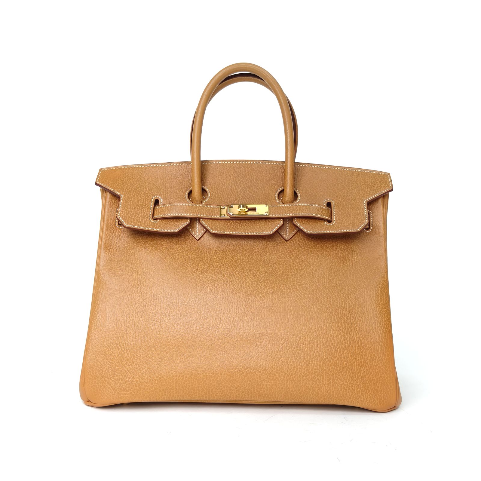 HERMES Buffalo Ardenne Leather Circle Z Gold Hardware birkin35 Gold Brown