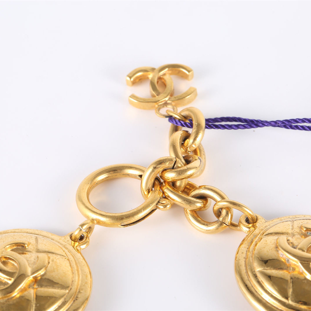 CHANEL Z207 Chanel Treillage Double C Logo Bracelet M-L size Alloy