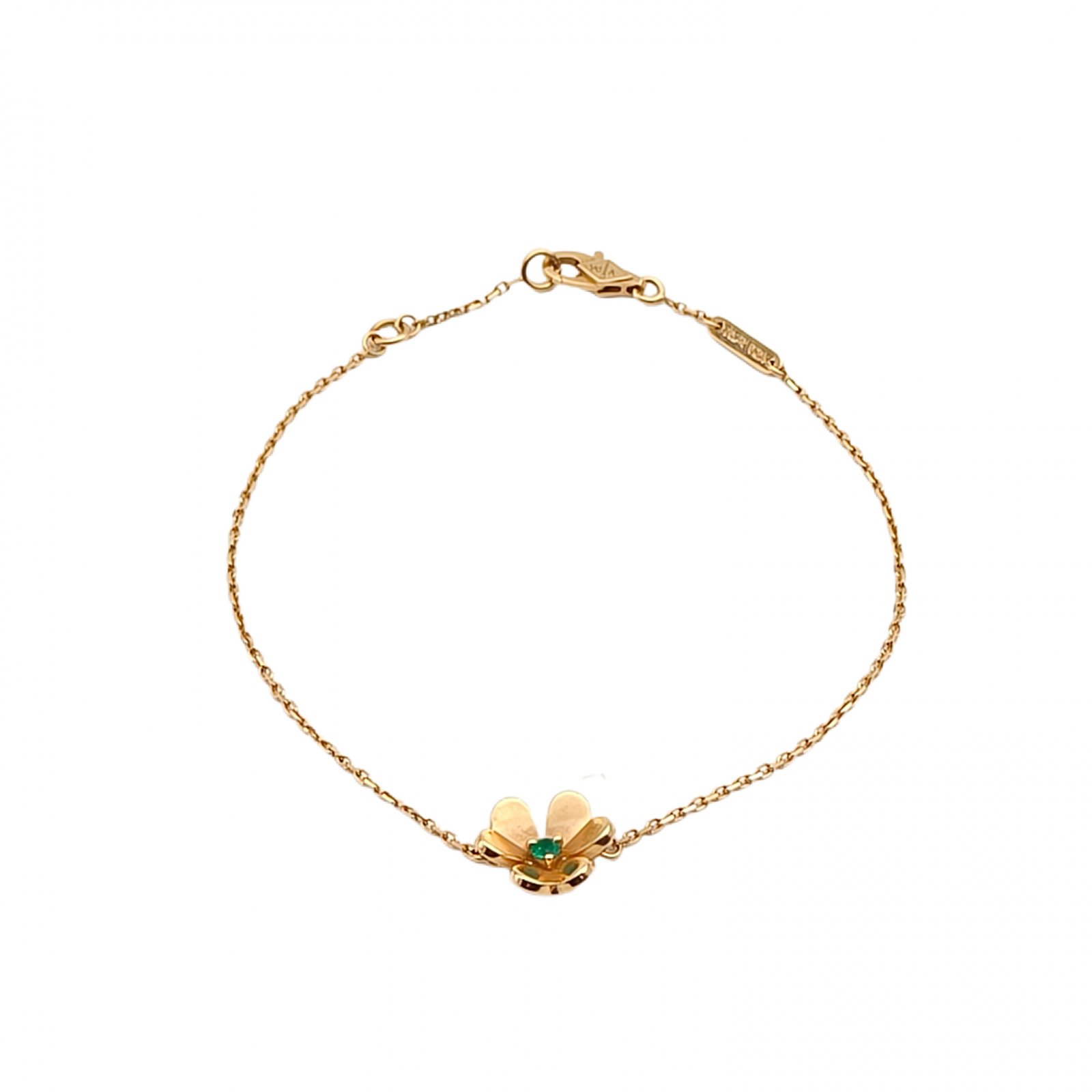 VAN CLEEF&ARPELS Gold Frivole Flower Bracelet Mini Clover Emerald 18K 18K Gold