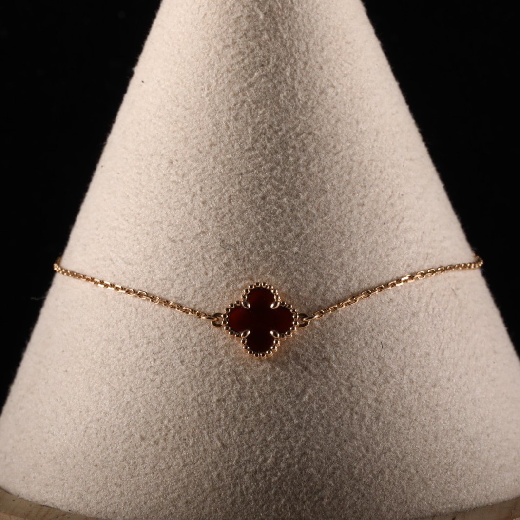 VAN CLEEF&ARPELS Sweet Alhambra Small Single Flower Bracelet New Clasp 18K Rose Gold,Carnelian