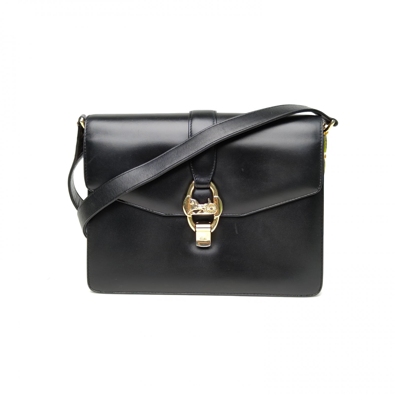 CELINE Black Gold Hardware Vintage Carriage Buckle Shoulder Bag