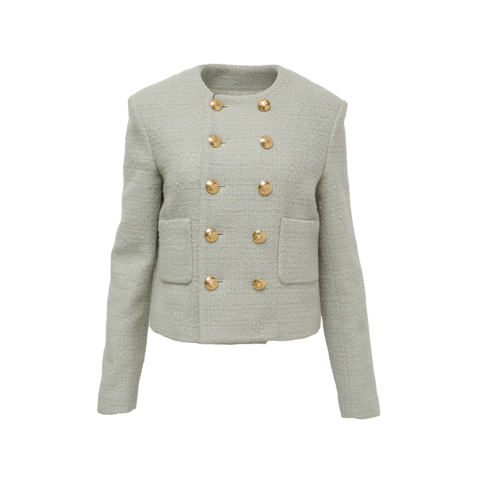 CELINE Green SS22 Double-breasted Round Neck Straight Long Sleeve Tweed Jacket