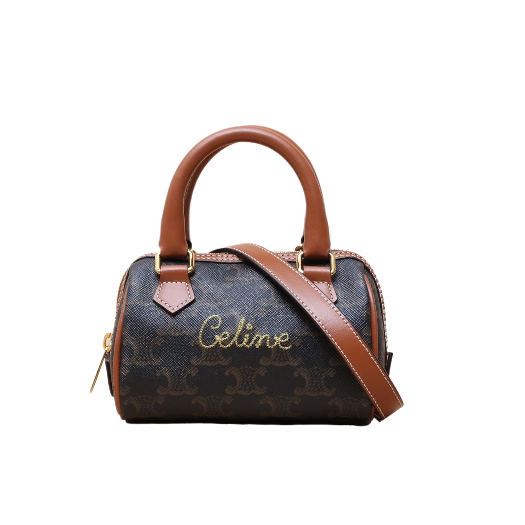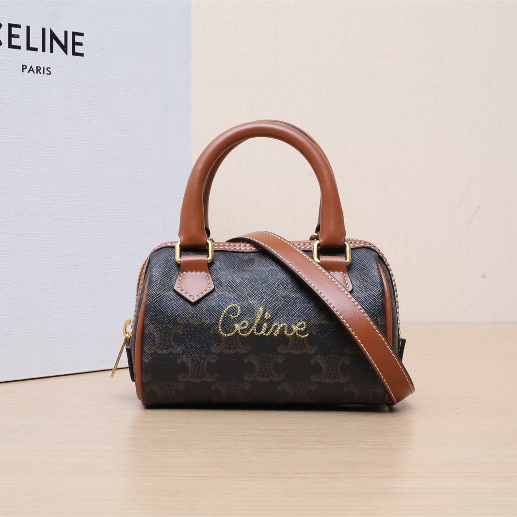 CELINE Triomphe logo print Boston Bag Mini 14 Handwritten logo