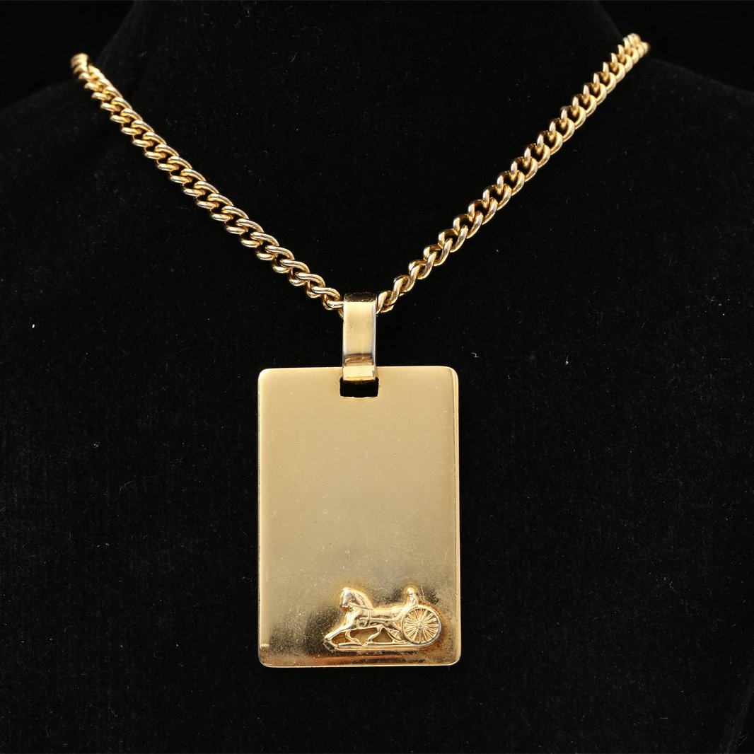 CELINE Vintage Carriage Gold Tag Necklace Alloy