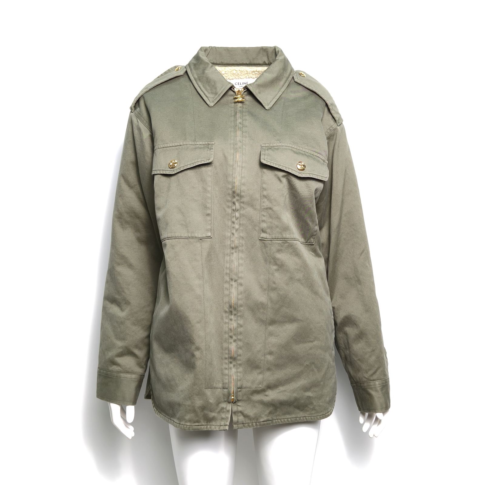 CELINE Green Arc de Triomphe Gold Buckle Coat 34