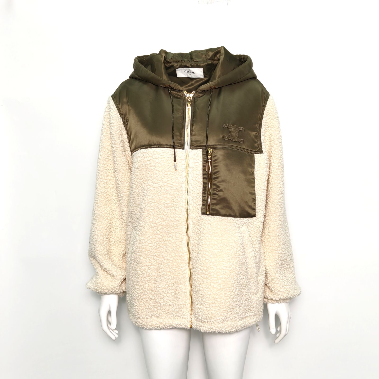 CELINE Colorblock Nylon Embroidered Arch Logo Hooded Zip Jacket 34