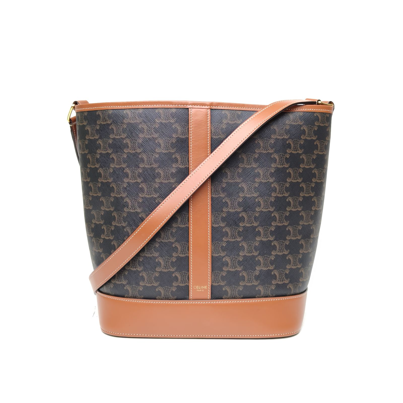 CELINE Triomphe Logo Printed Canvas Bucket Bag, Medium 27