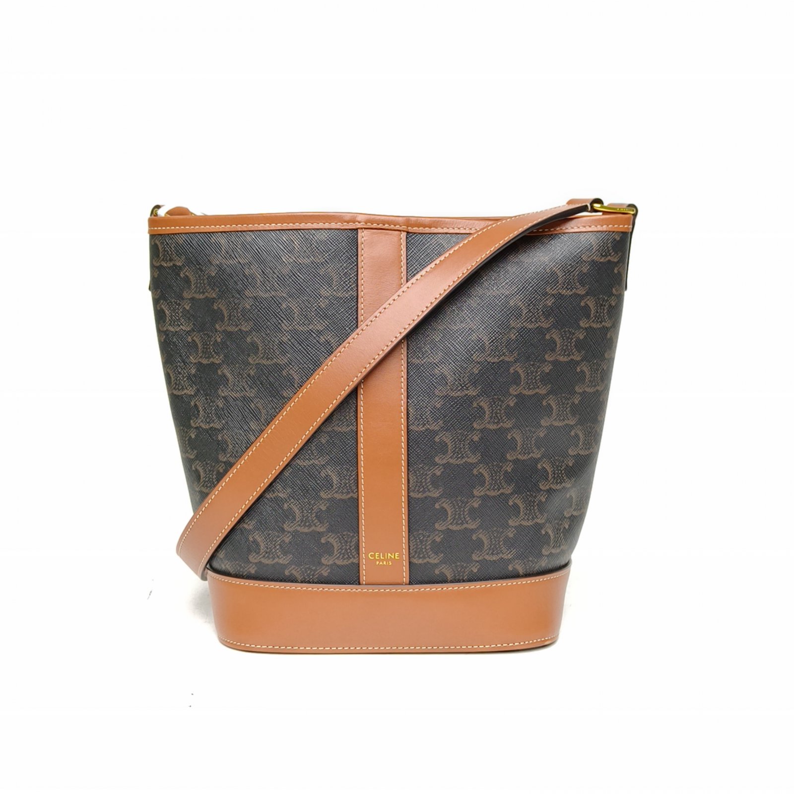 CELINE Triomphe Logo Printed Canvas Bucket Bag, Small 18