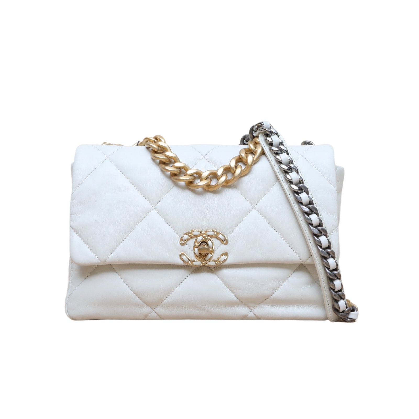 CHANEL White Chip Gold Hardware 23S CF Large Mini Heart Buckle Shoulder Bag