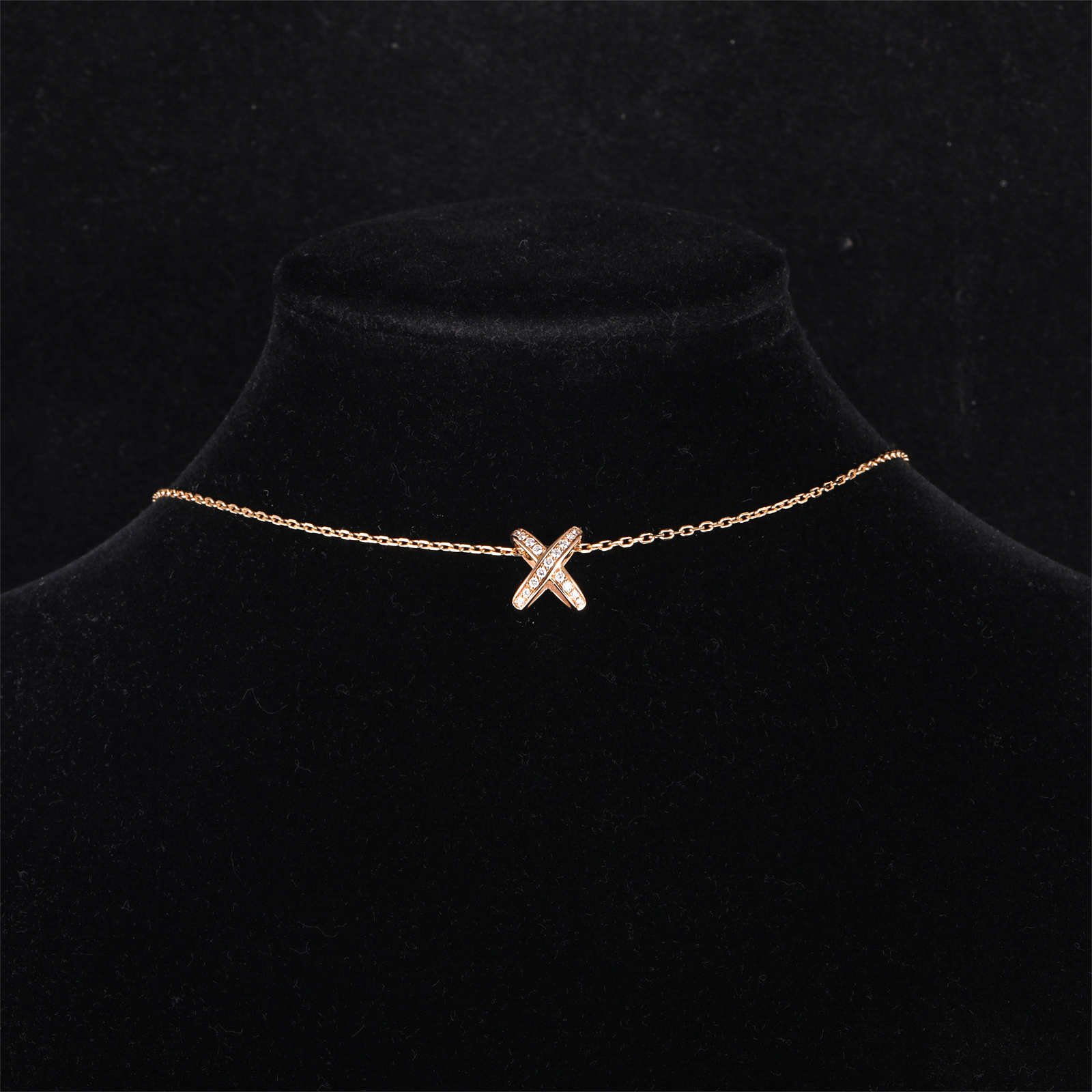 CHAUMET Rose Gold Juxe De Liens Small Fork Necklace Full Diamond 18K 18K Rose Gold,Diamond