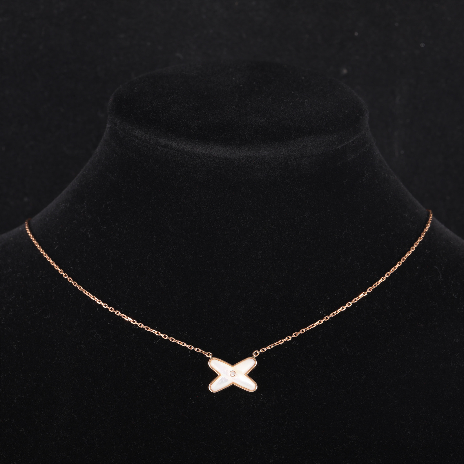 CHAUMET Juxe De Liens Pearl Mother-of-Pearl Single Diamond Small Fork Necklace 18K Rose Gold,Mother of Pearl,Diamond