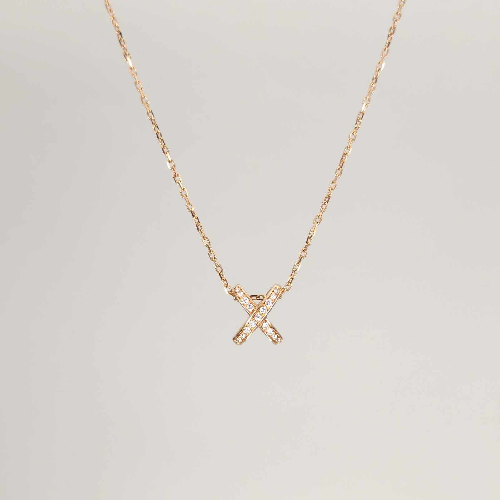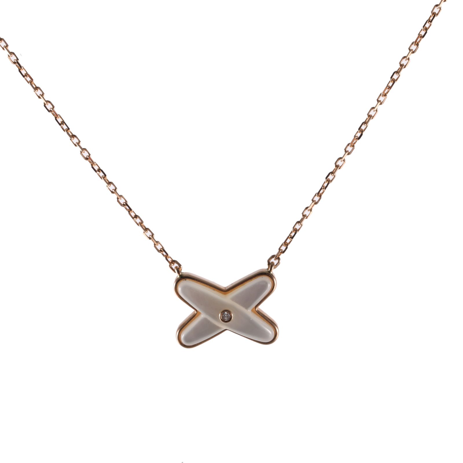 CHAUMET Rose Gold Chaumet Full Diamond Cross Necklace 18K Diamond,18K Rose Gold
