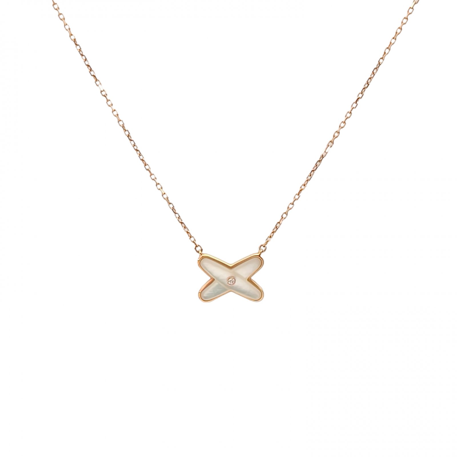 CHAUMET Juxe De Liens Pearl Mother-of-Pearl Single Diamond Small Fork Necklace 18K Rose Gold,Diamond