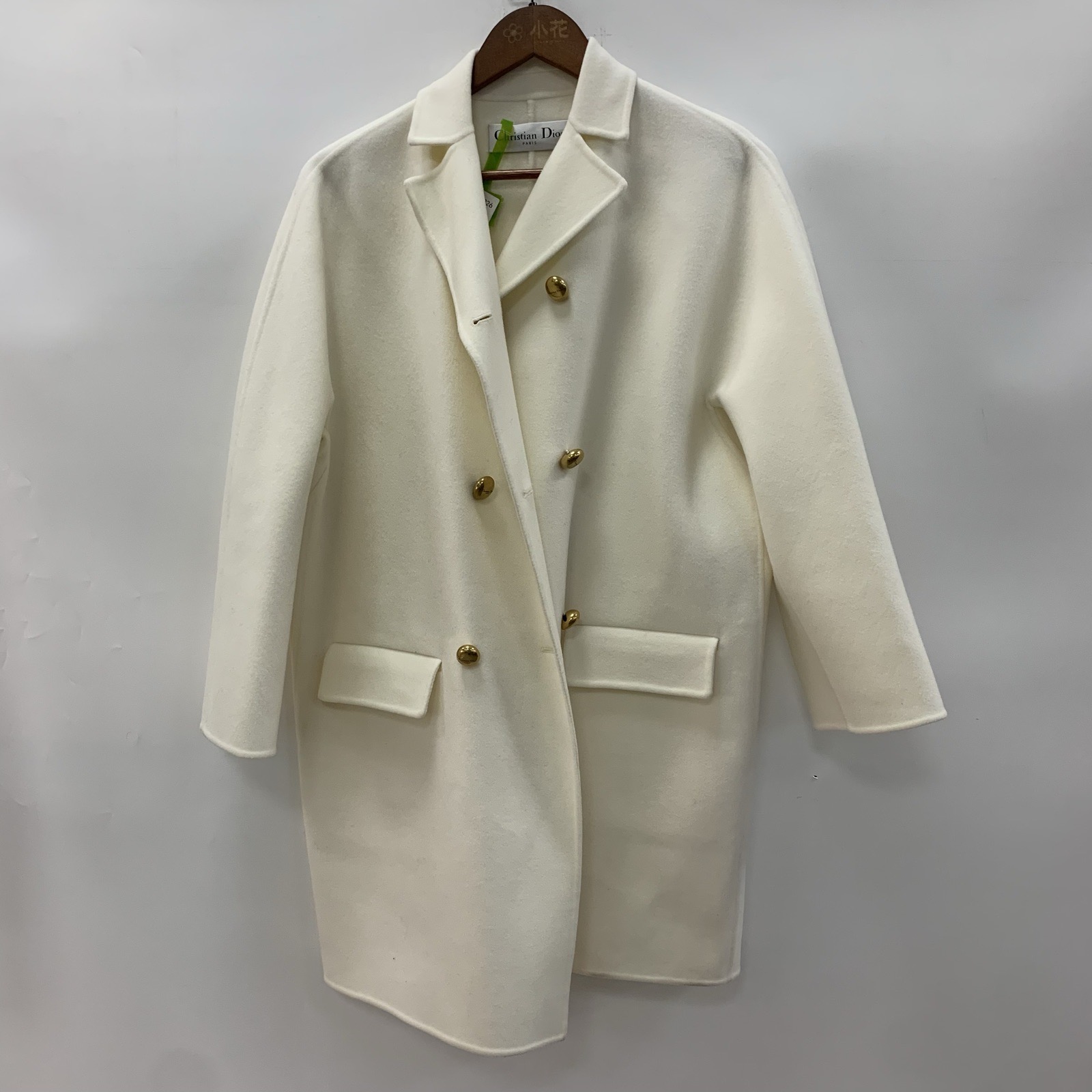DIOR Off-white Solid Double-breasted Notched Coat