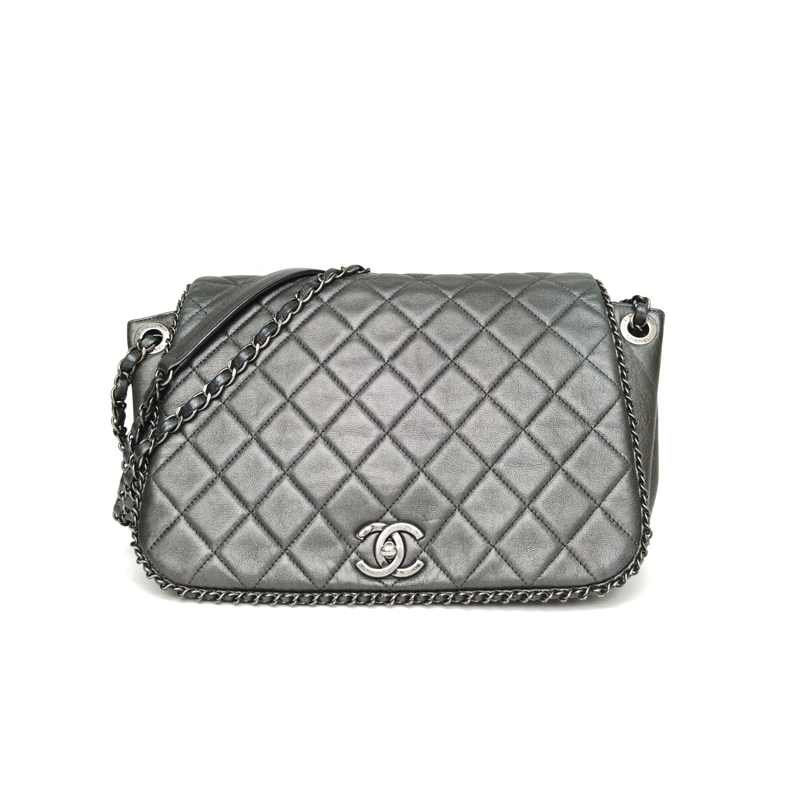 CHANEL Gray 2016 Sliver Hardware Seasonal Chain Piping