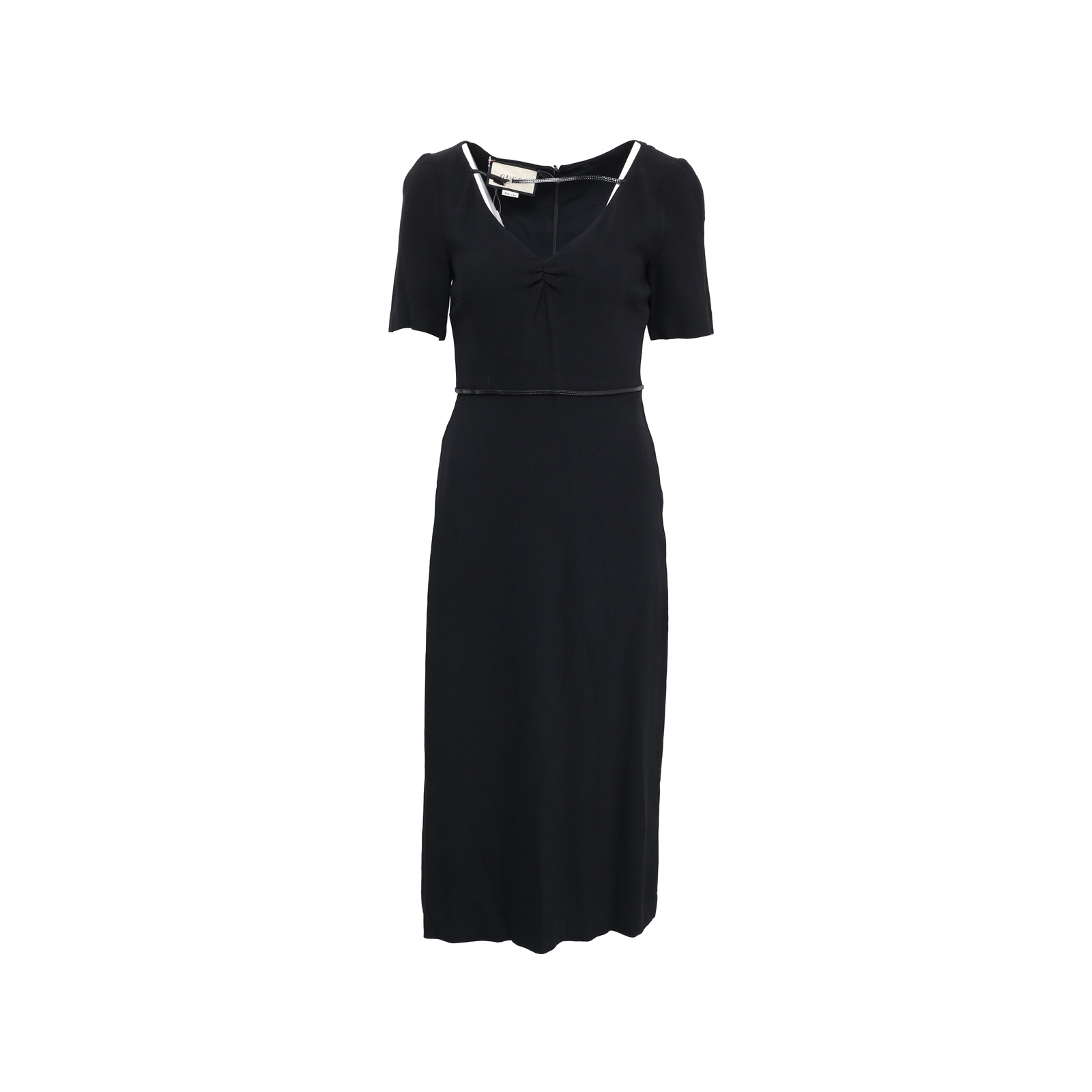 GUCCI 623454 Silver G Black Belt Buckle V-neck Short Sleeve Dress Black XS