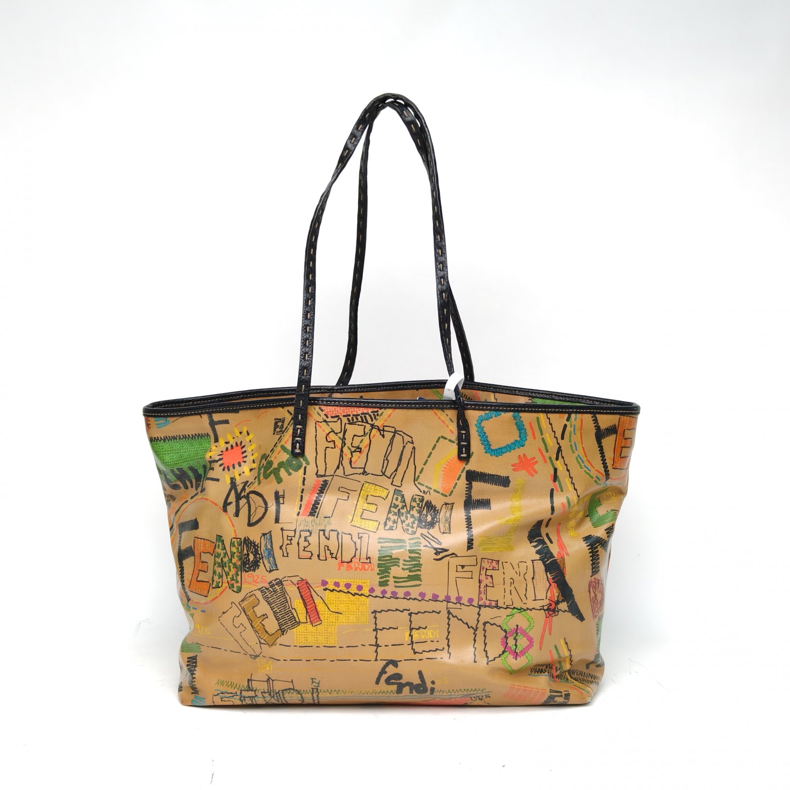 FENDI Brown PVC Gold Hardware Graffiti Shoulder Bag