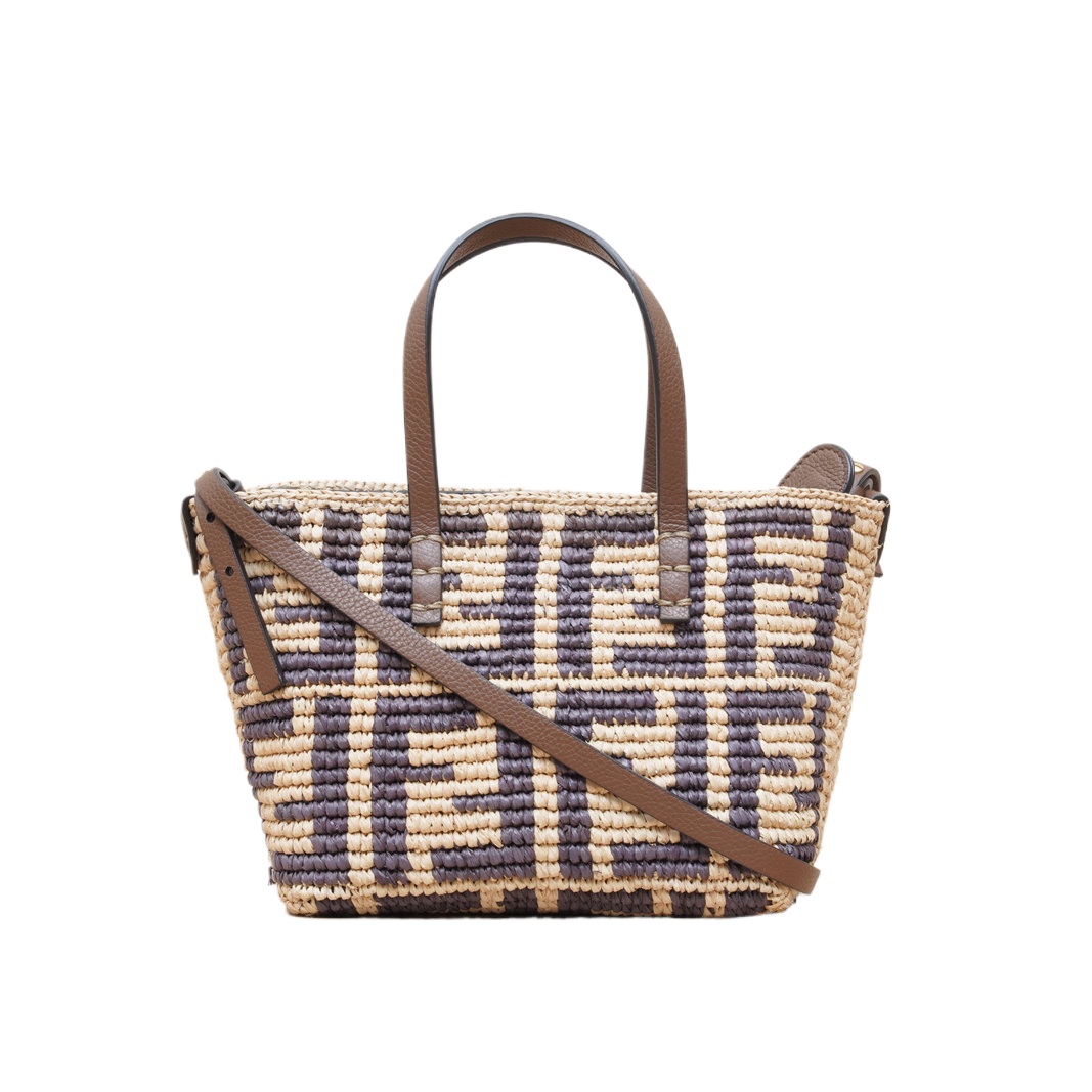 FENDI Color-blocked Straw Mini Loop FF Tote Bag