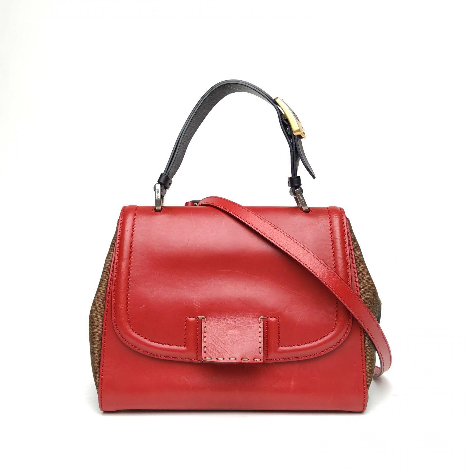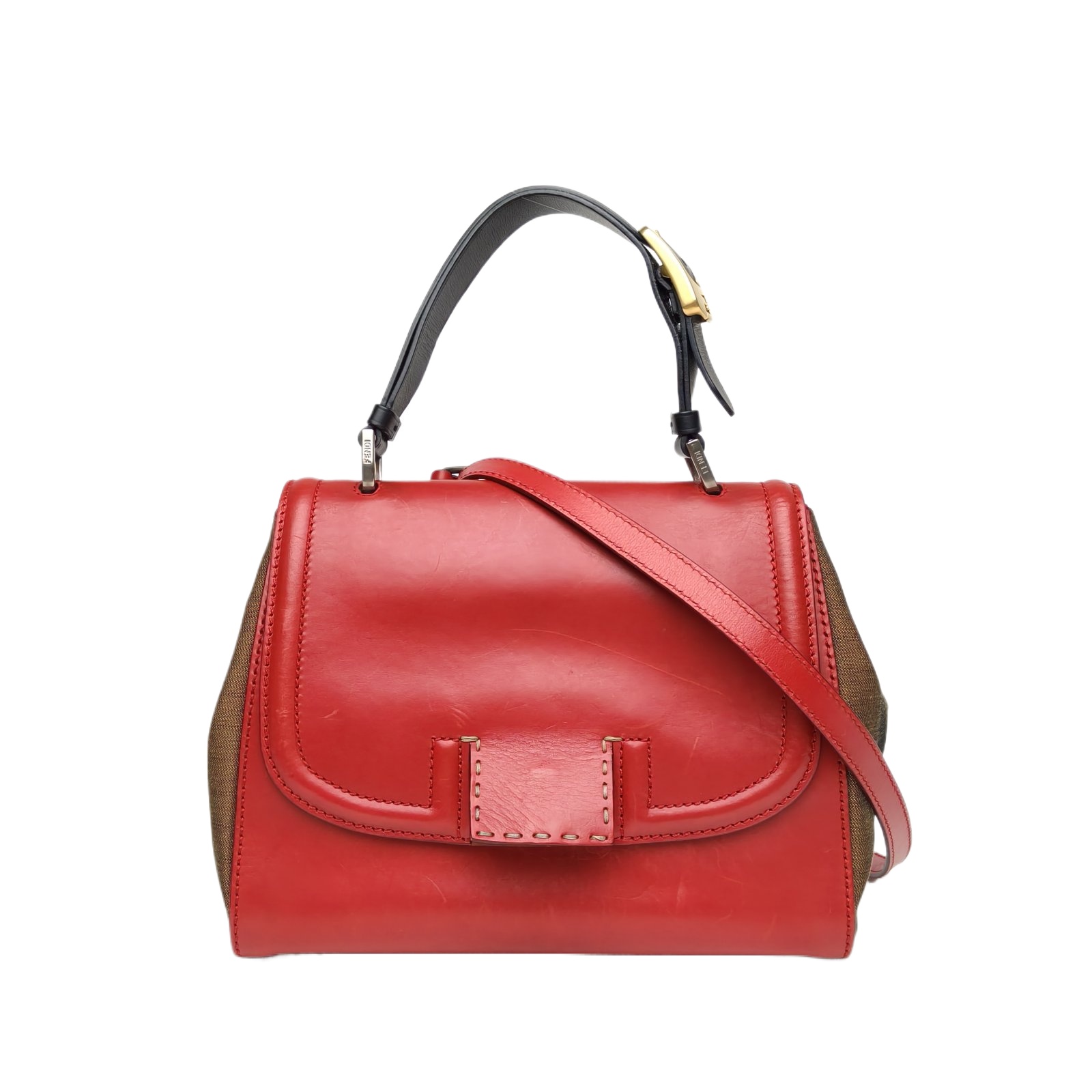 FENDI Red Canvas, Gold Hardware, Vintage Monogram Flying Saucer Shoulder Bag