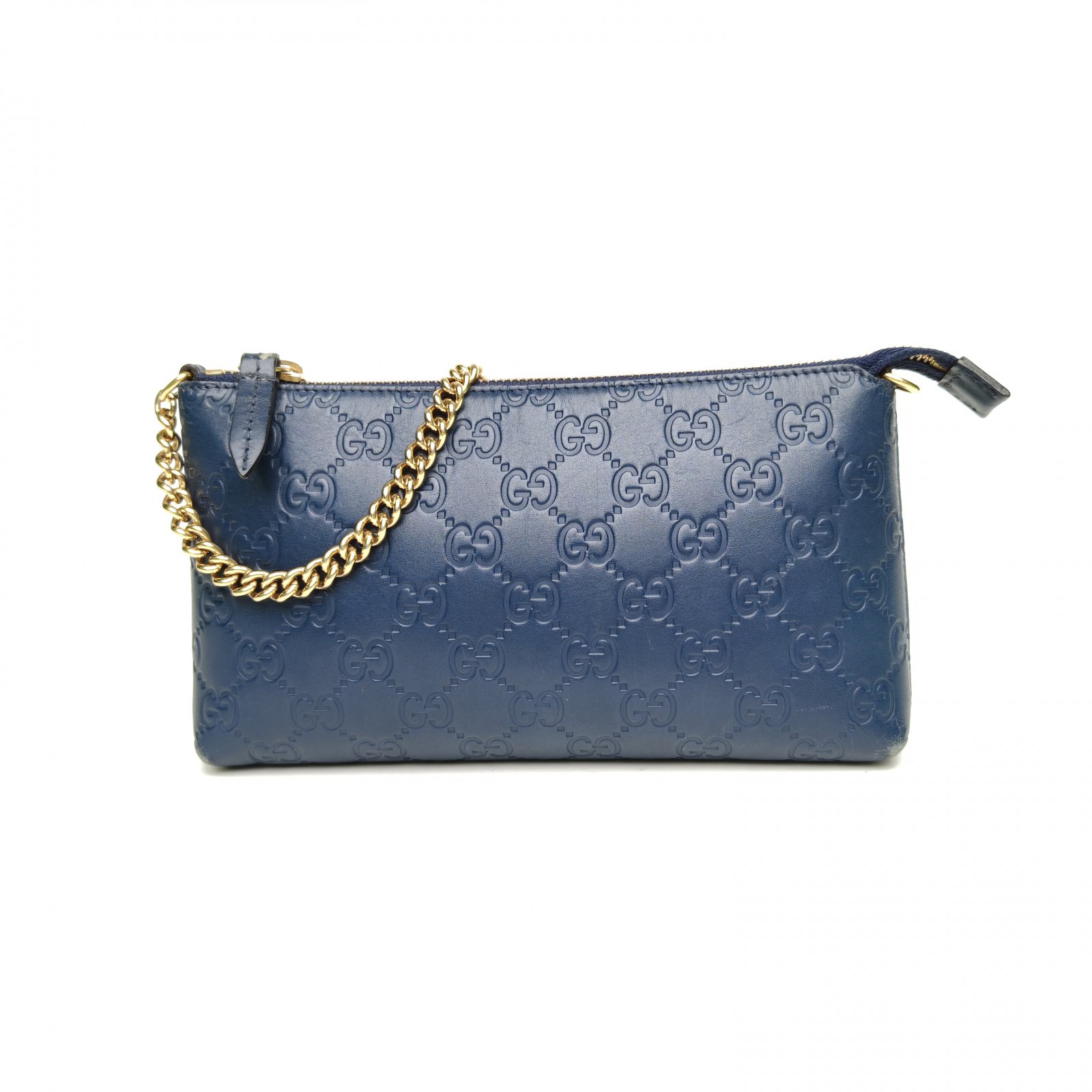 GUCCI Blue Leather C Gold Hardware GG Embossed Chain Bag