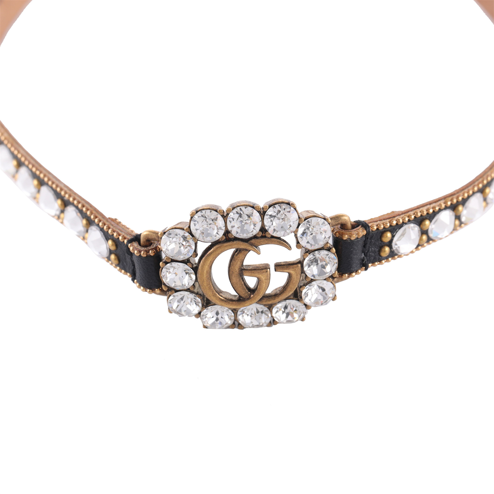 GUCCI GG Classic Crystal Necklace Multi-layer Bracelet Two-in-One Alloy,Grained Leather