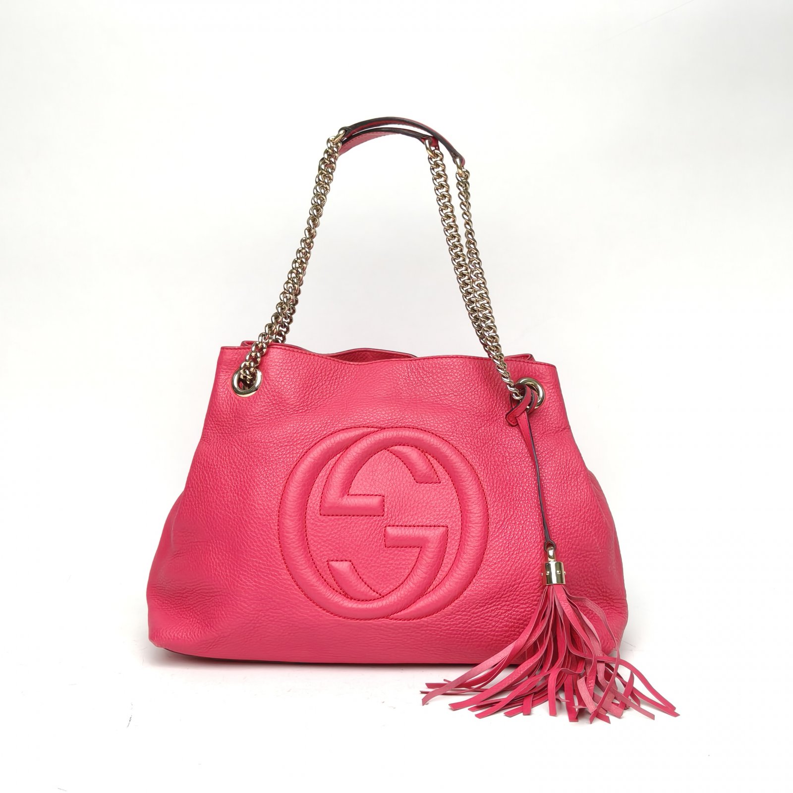 GUCCI Rose Red Sliver Hardware soho Tassel Chain Bag