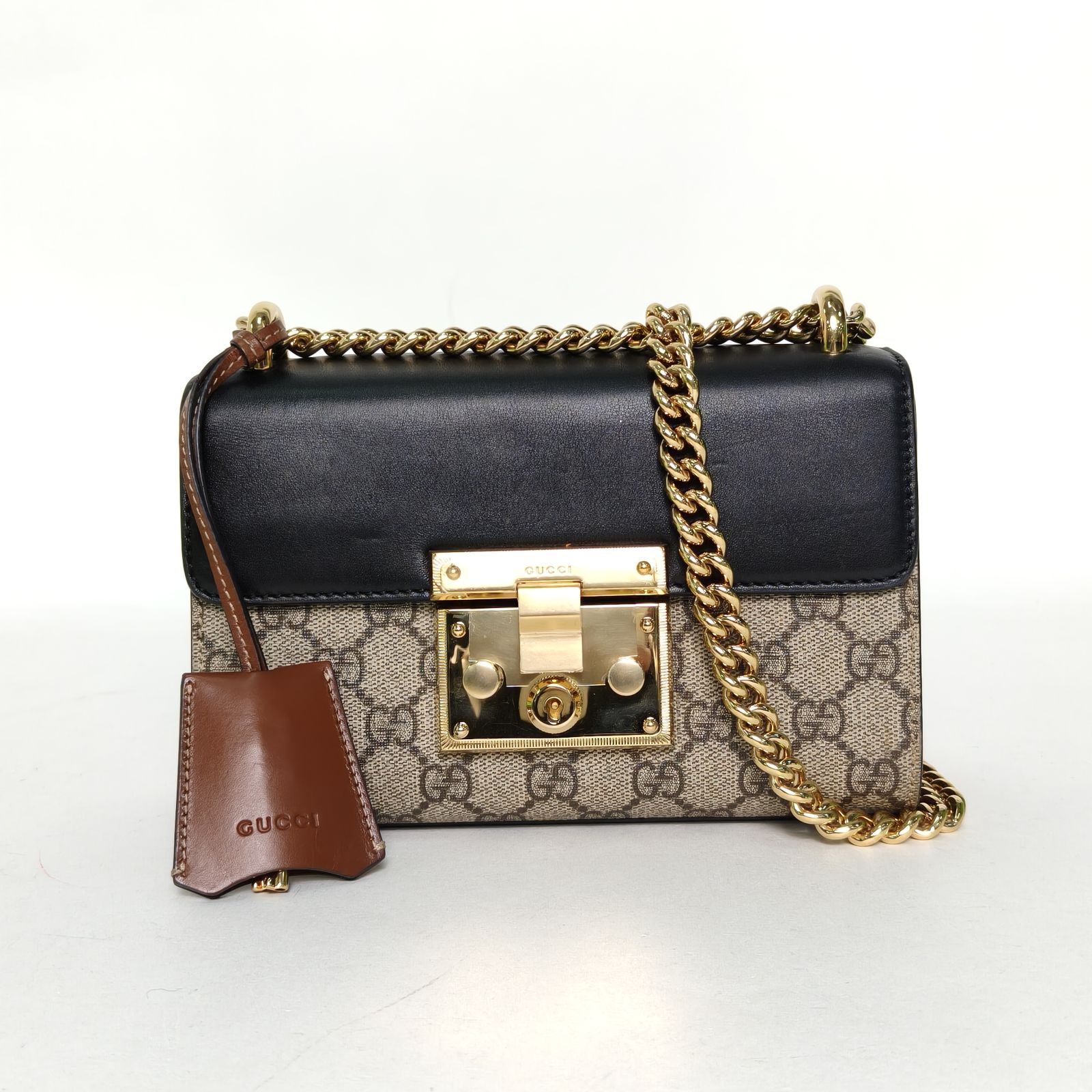 GUCCI Gucci Monogram Canvas Shoulder Bag with Gold Hardware