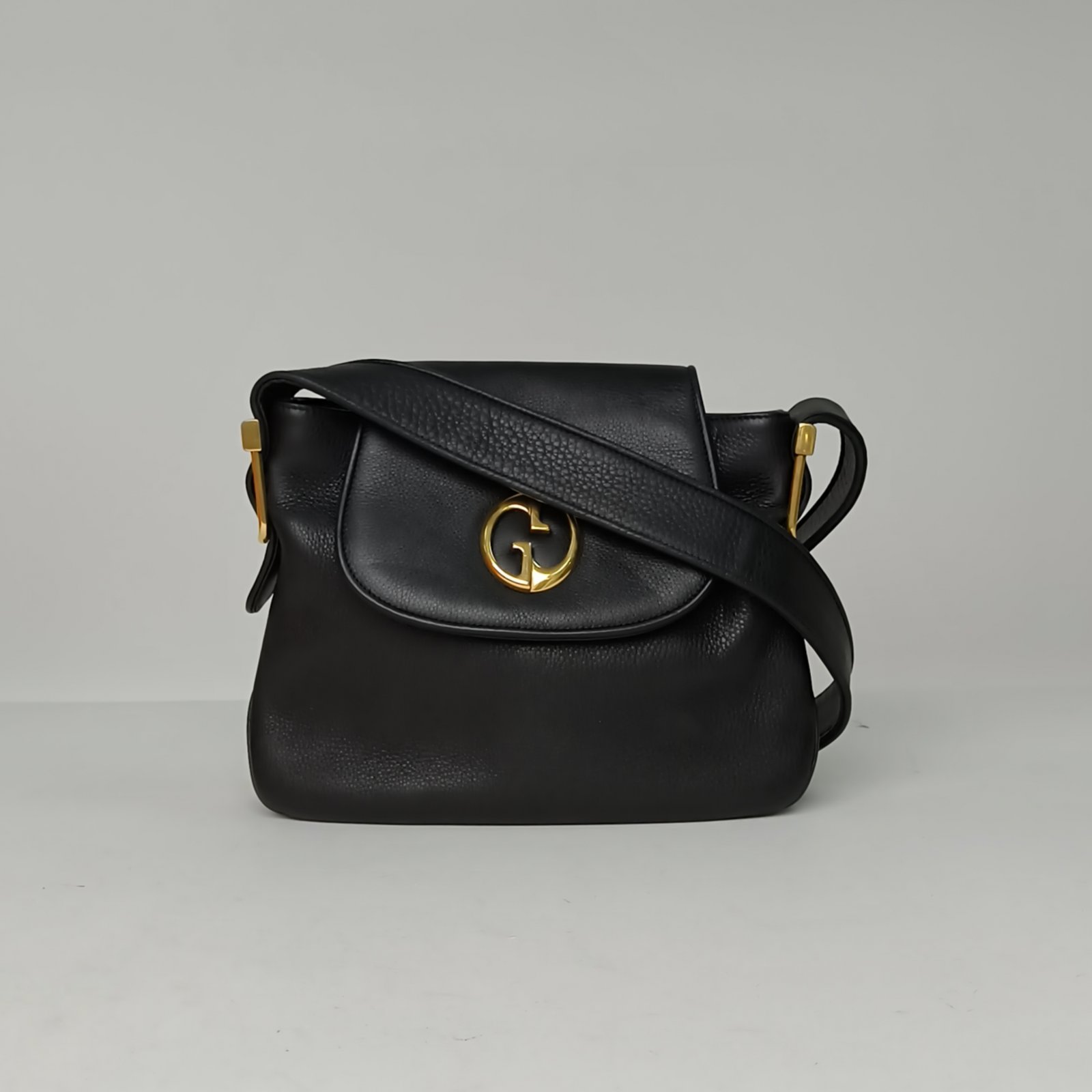 GUCCI Black Leather C Gold Hardware 1973 Collection Crossbody Bag