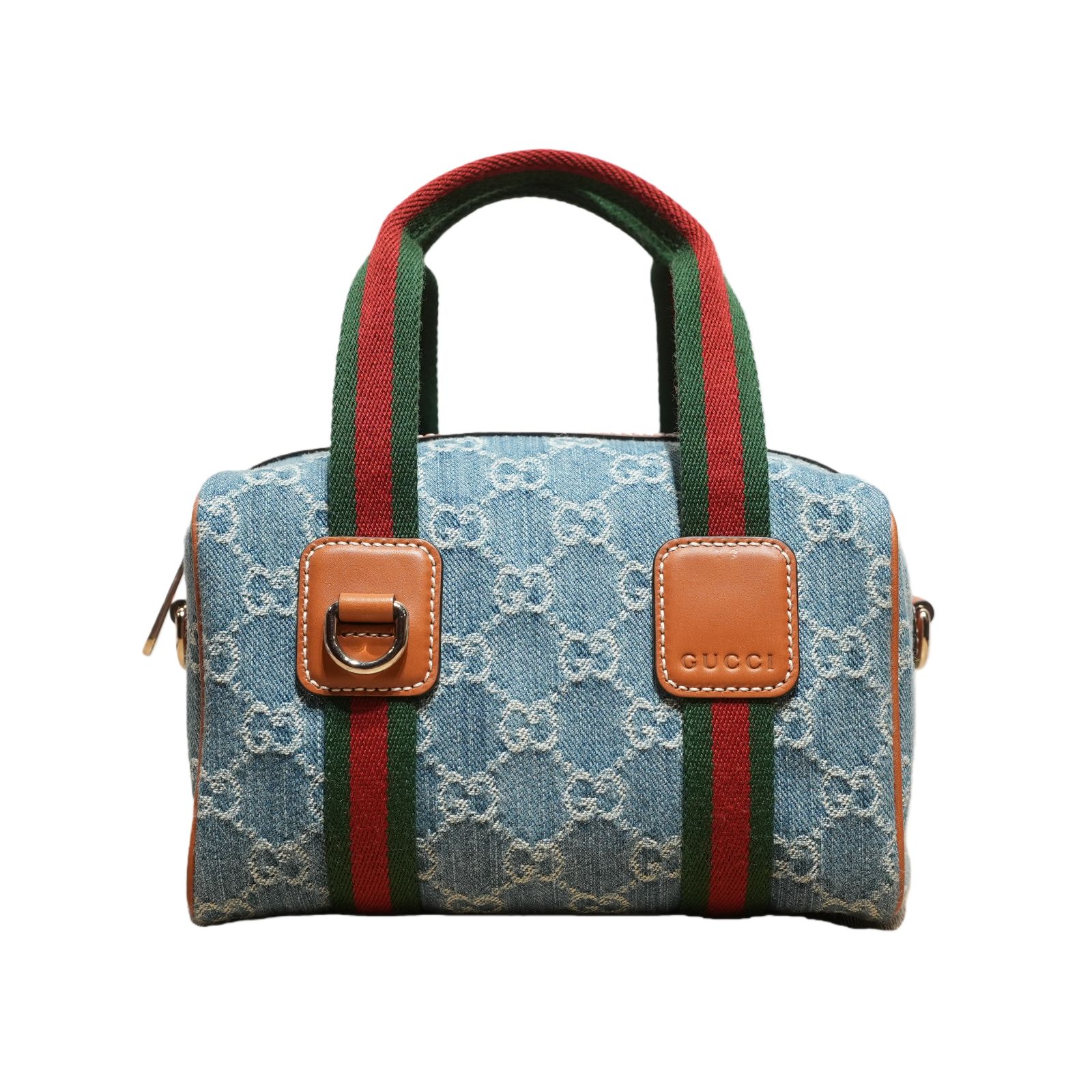 GUCCI GUCCI GG Mini Boston Bag — Monogram Denim with Gold Hardware