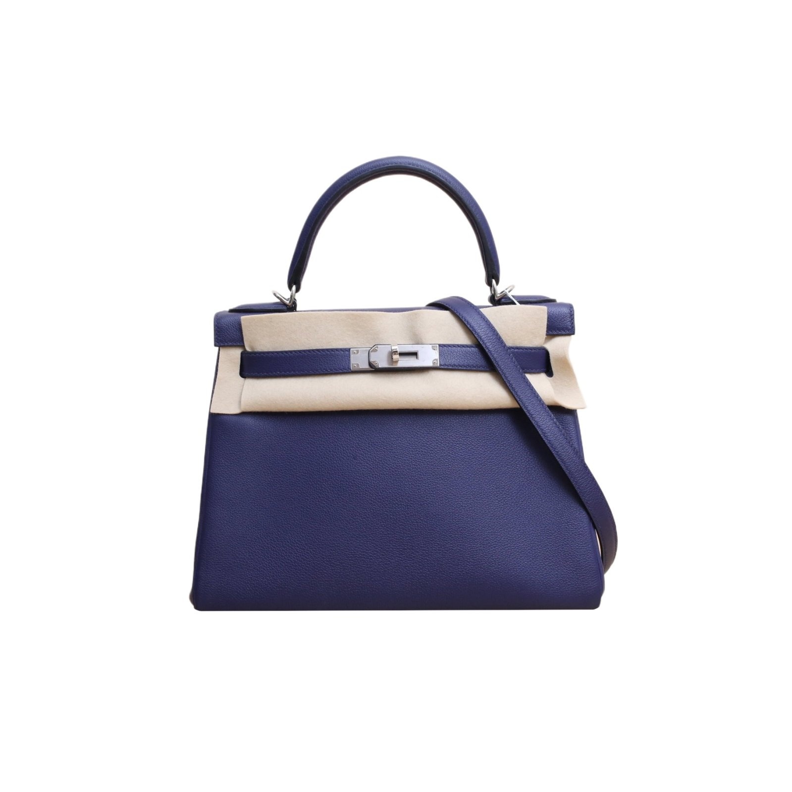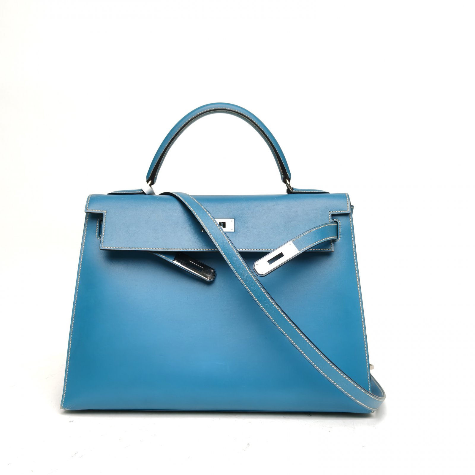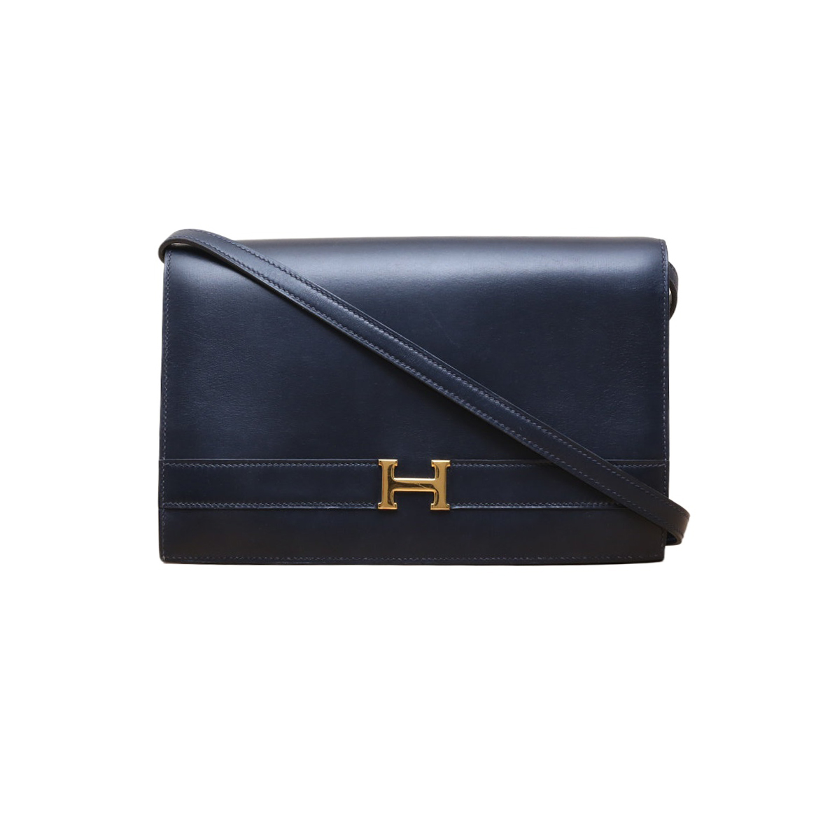 HERMES 76 Indian Blue Box Leather Circle O Gold Hardware Vintage Envelope Shoulder Bag