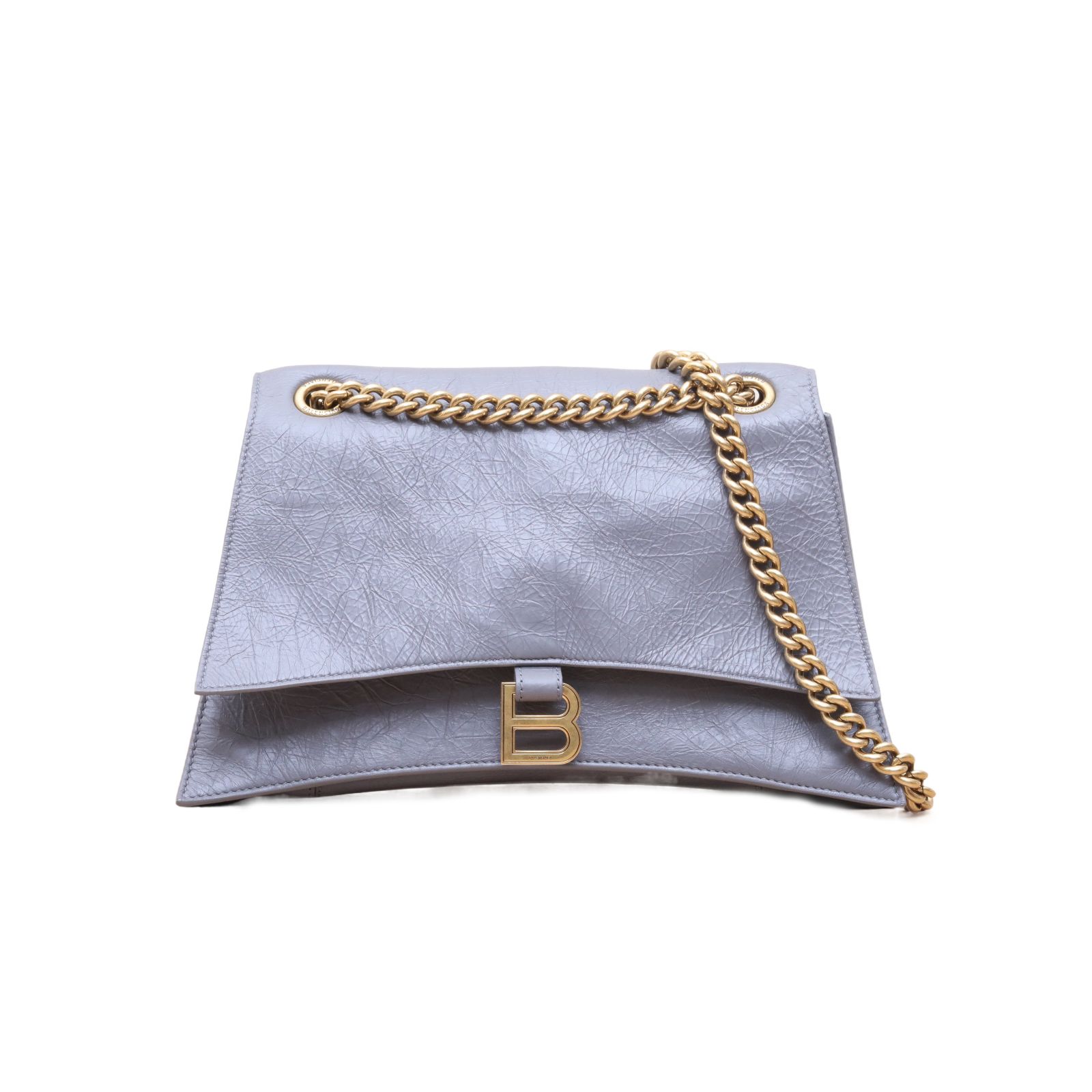 BALENCIAGA Dark Gray Denim Crush Hourglass Bag XS