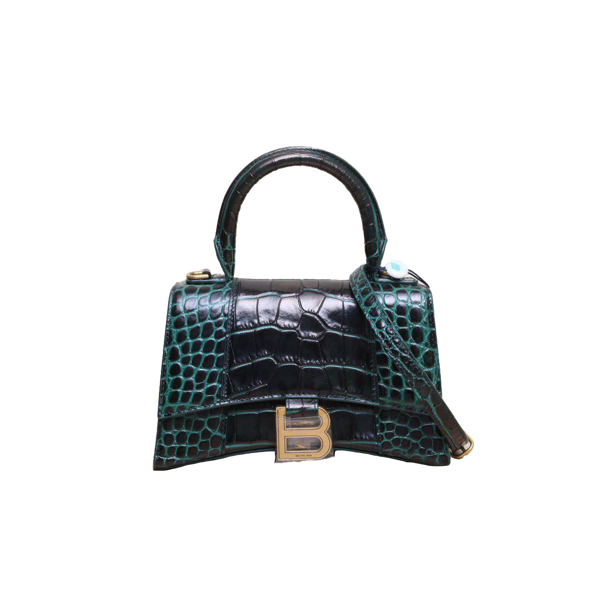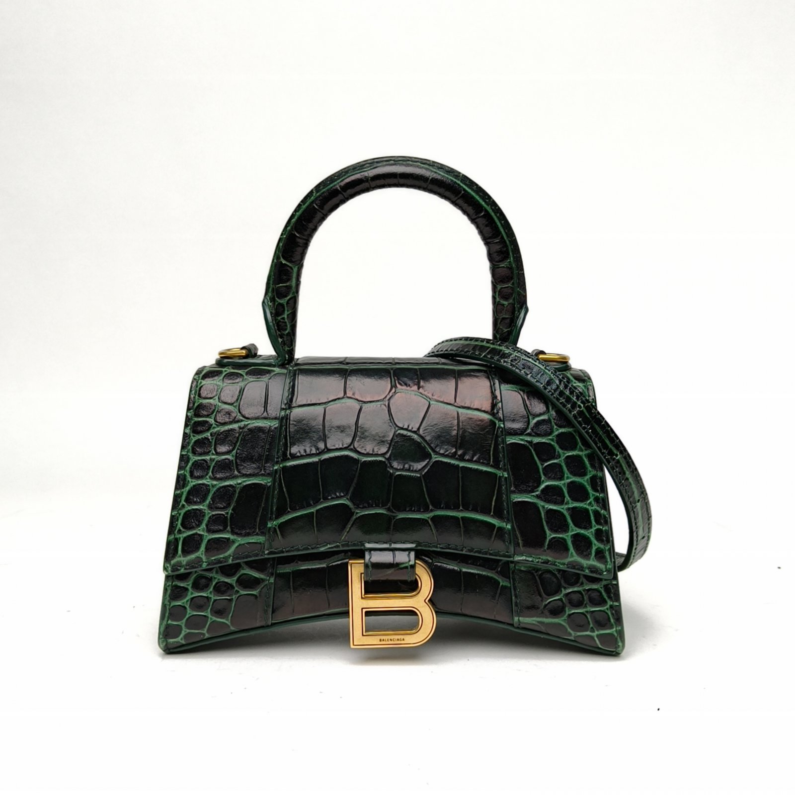 BALENCIAGA Crocodile Embossed Hourglass Handbag XS