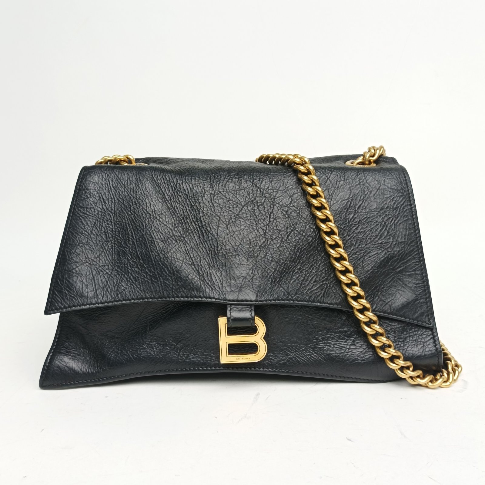 BALENCIAGA Black CRUSH Hourglass Vintage Distressed Hand Shoulder Bag XS 21.5