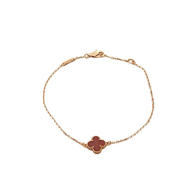VAN CLEEF&ARPELS Sweet Alhambra Small Single Flower Bracelet New Clasp 18K Rose Gold,Carnelian