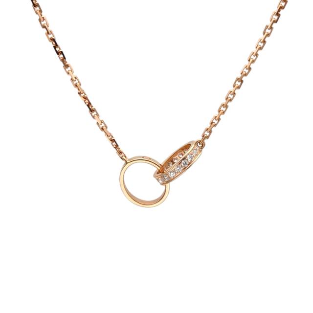CARTIER LOVE 18K Gold Half Diamond Double Loop Necklace 18K Rose Gold,Diamond