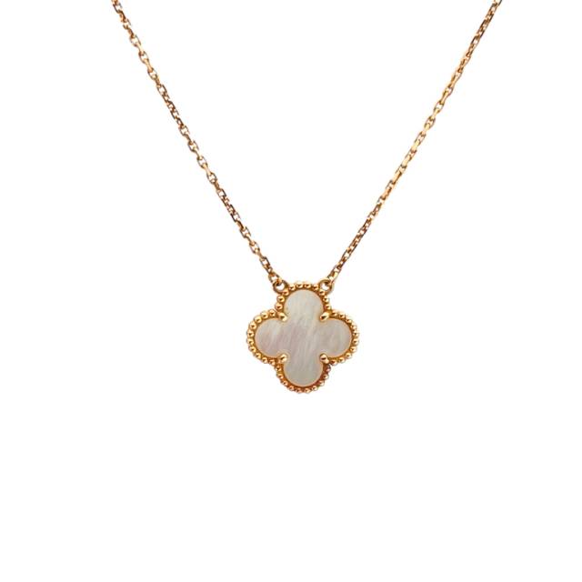 VAN CLEEF&ARPELS Vintage Alhambra Medium Single Flower Necklace 18K Gold,Mother of Pearl