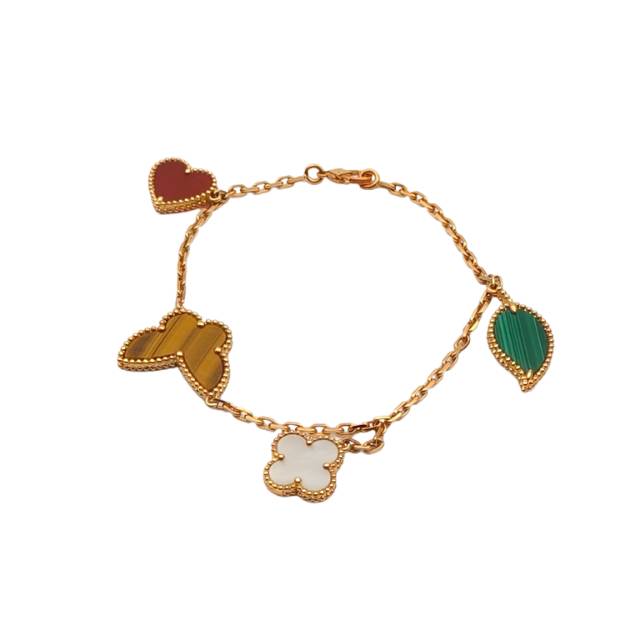 VAN CLEEF&ARPELS Lucky Alhambra Bracelet 4 motifs 18K Gold,Mother of Pearl,Malachite,Carnelian,Tigerite