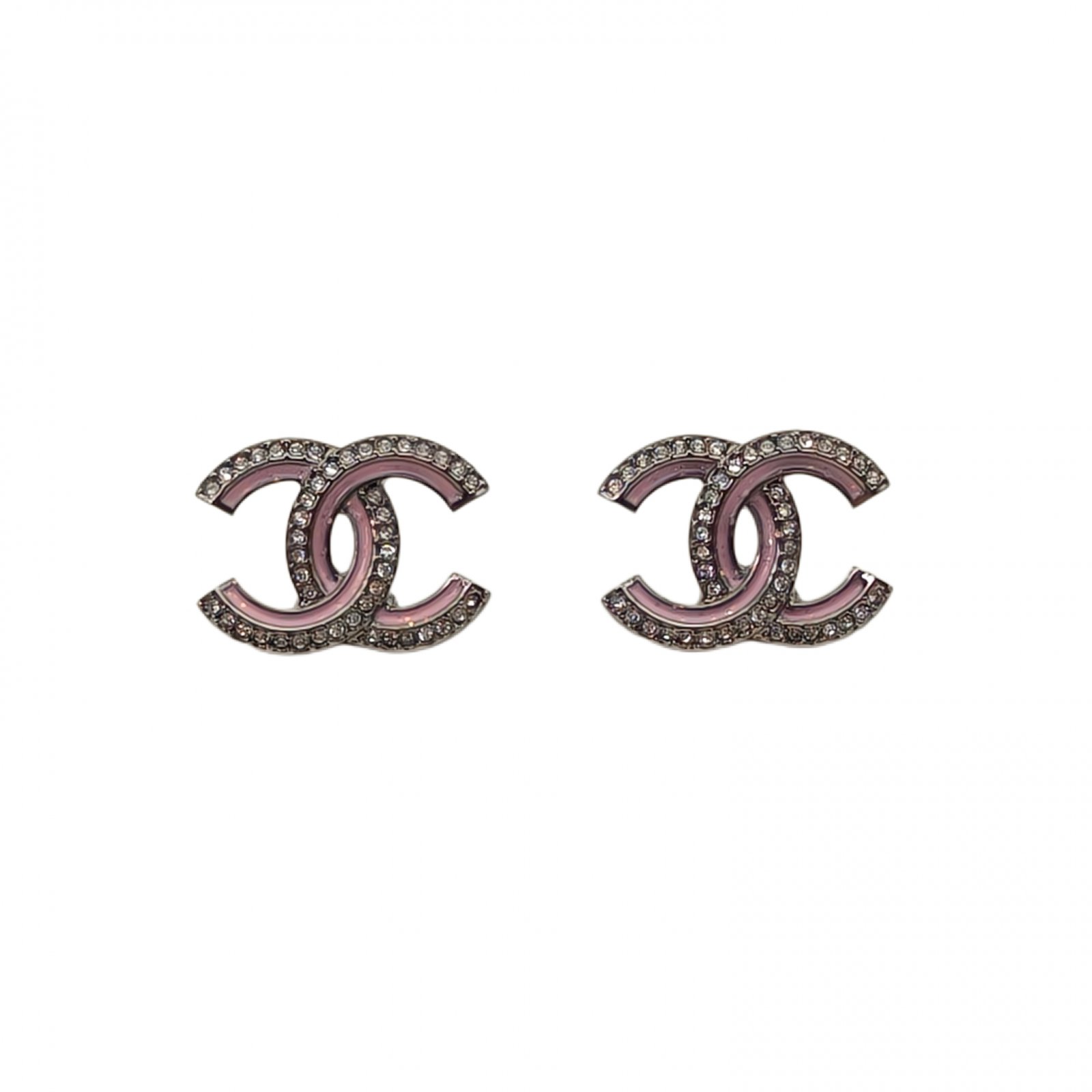 CHANEL 25B Double C Enamel Diamond Stud Earring Alloy