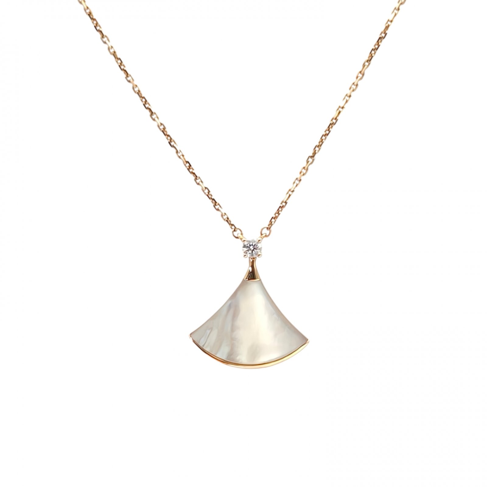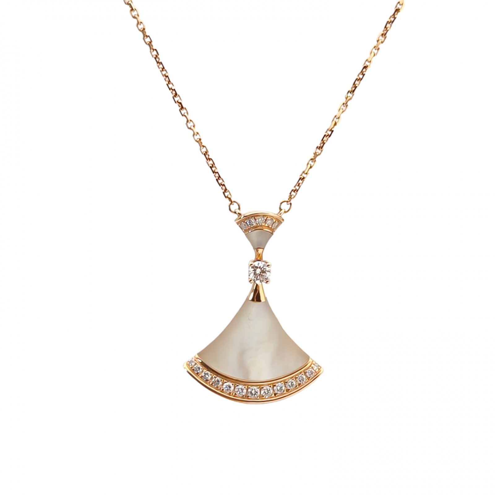 BVLGARI DIVAS DREAM Mother of Pearl Single Diamond 18K Gold Necklace Large 18K Rose Gold,Diamond,Mother of Pearl