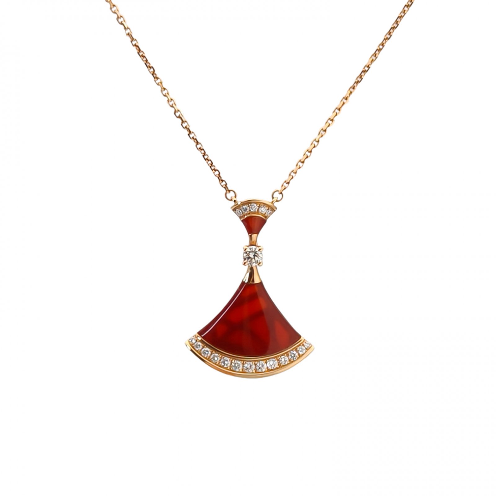 BVLGARI DIVAS DREAM Fan Edge Diamond Necklace Medium Size 18K Rose Gold,Diamond,Carnelian