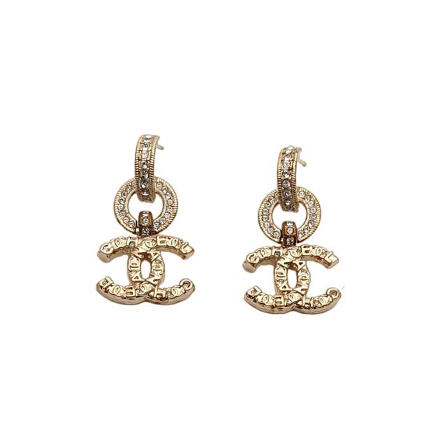 CHANEL Double C Rhinestone Diamond Stud Earring Alloy