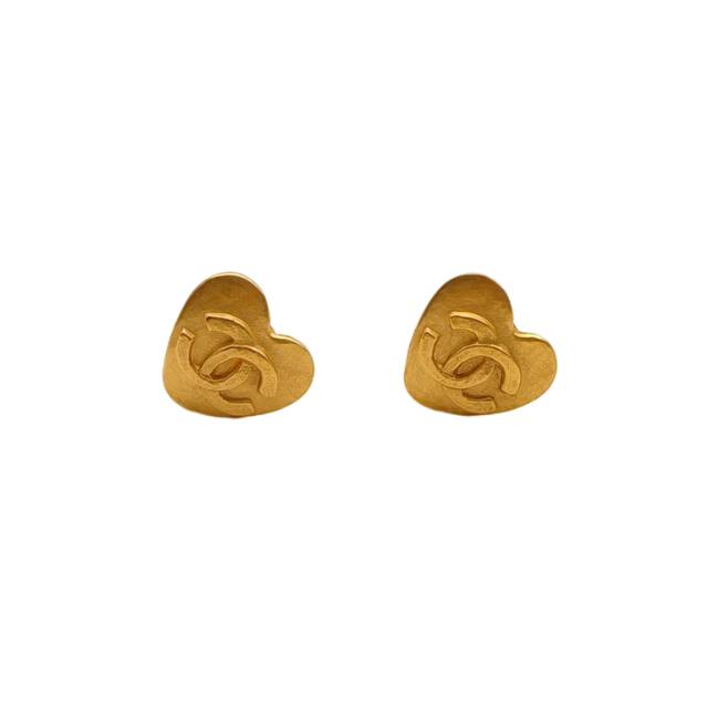 CHANEL 95P Vintage Heart Double C Clip-on Earrings Alloy