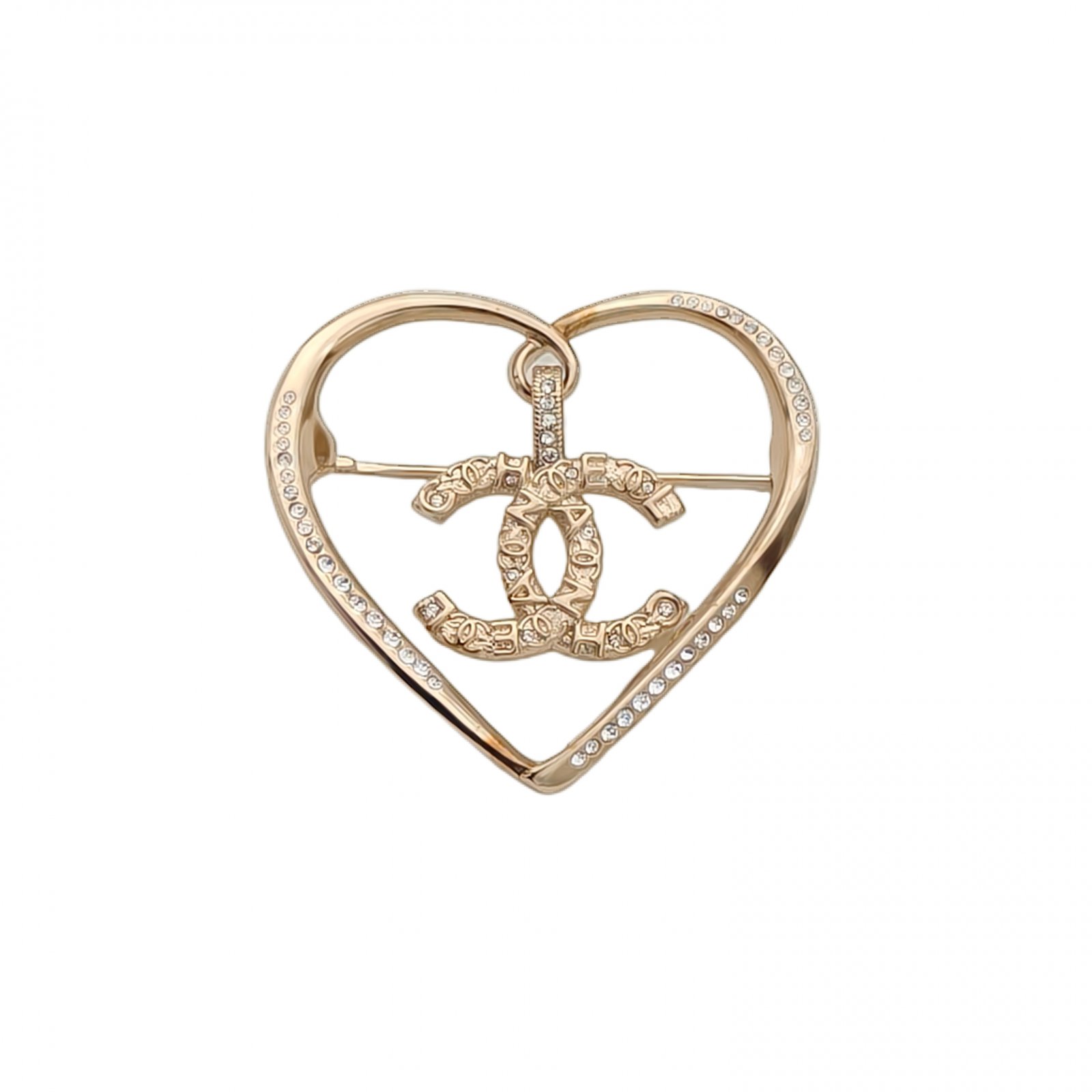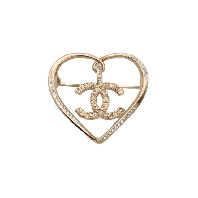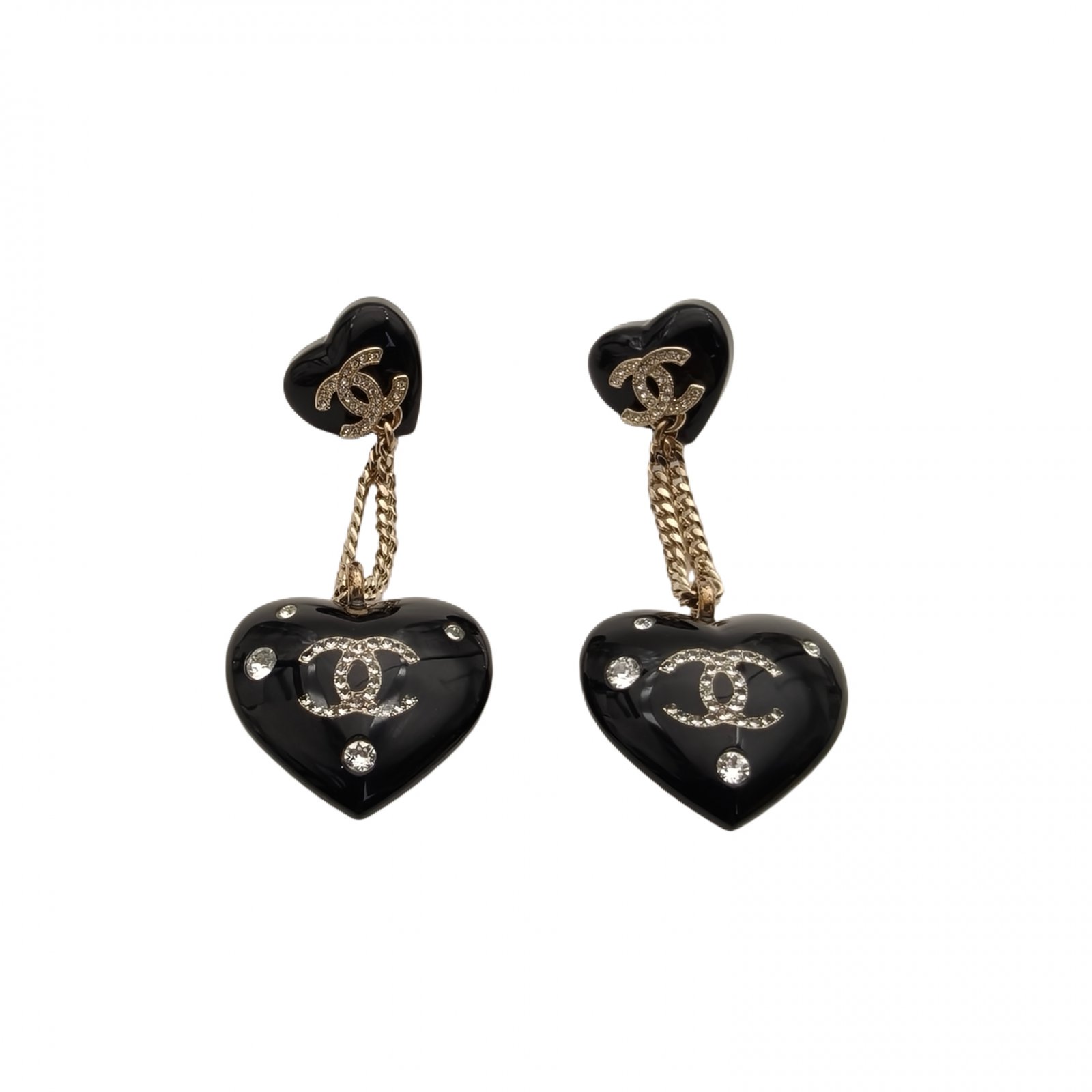 CHANEL 22B Double C Crystal Acrylic Heart Earrings Alloy