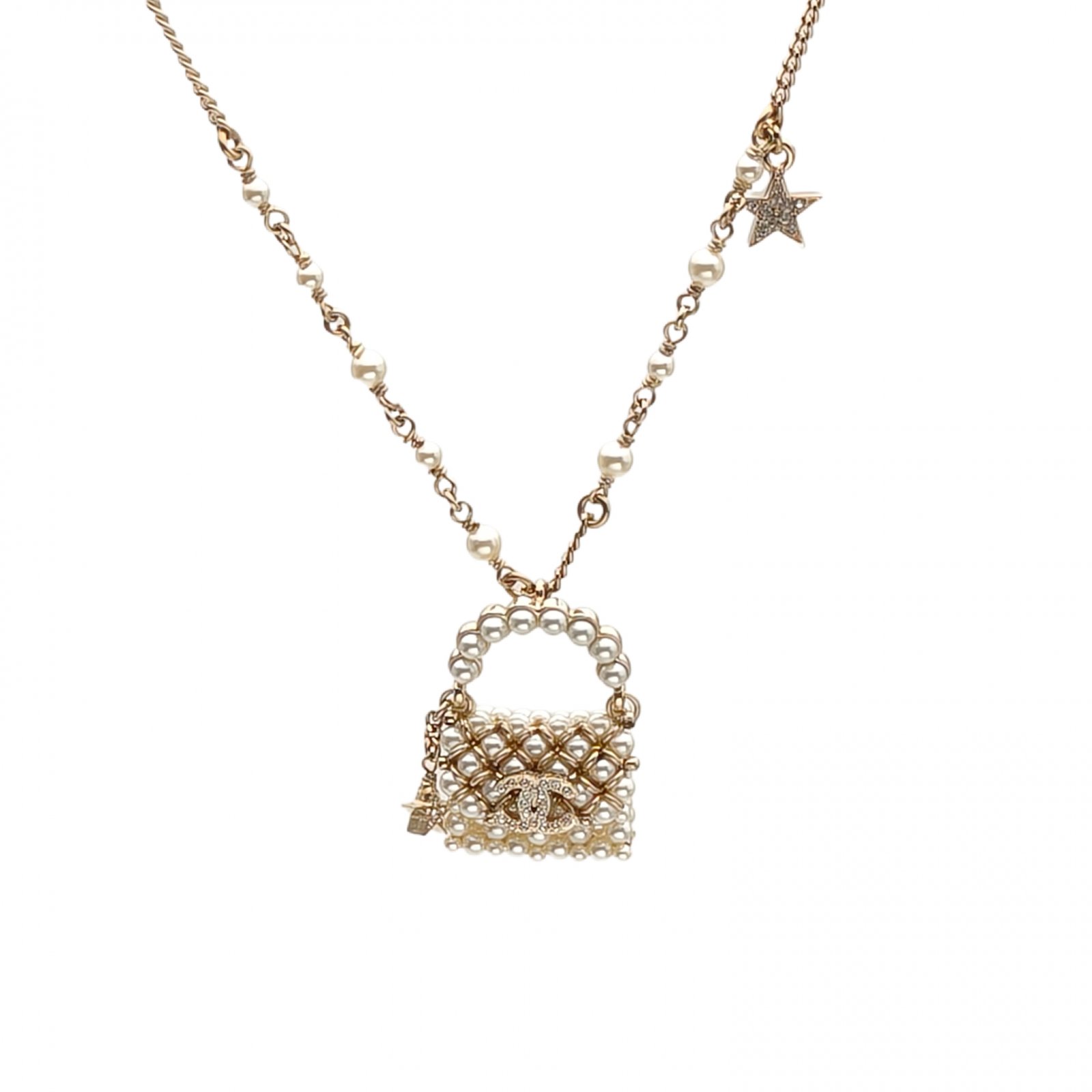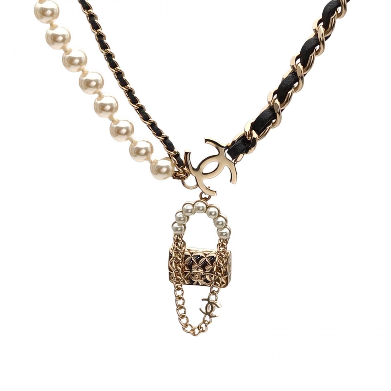 *CHANEL 23A Pearl Bag Pendant Necklace Alloy