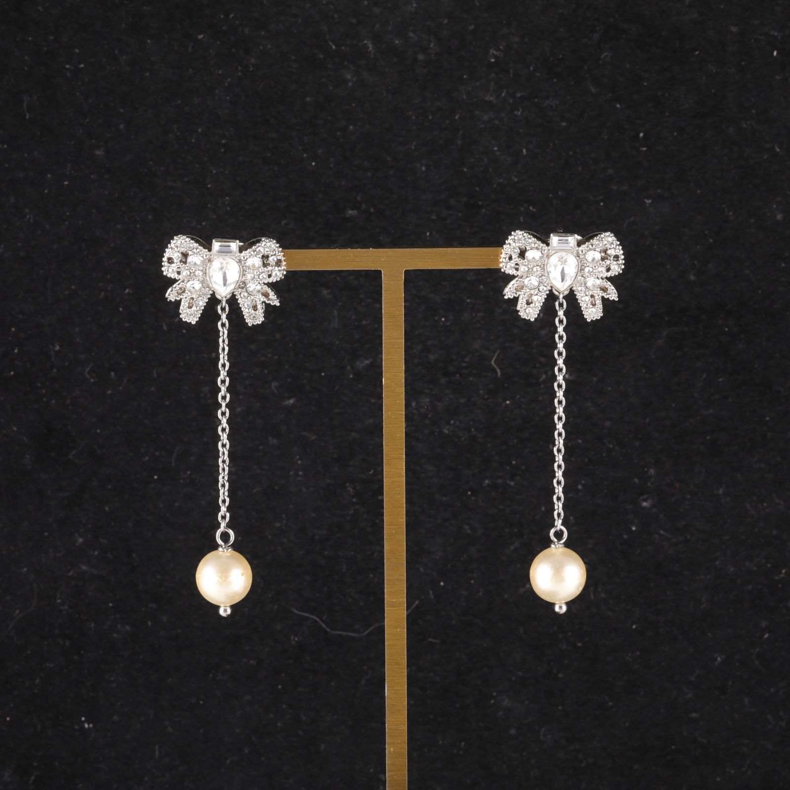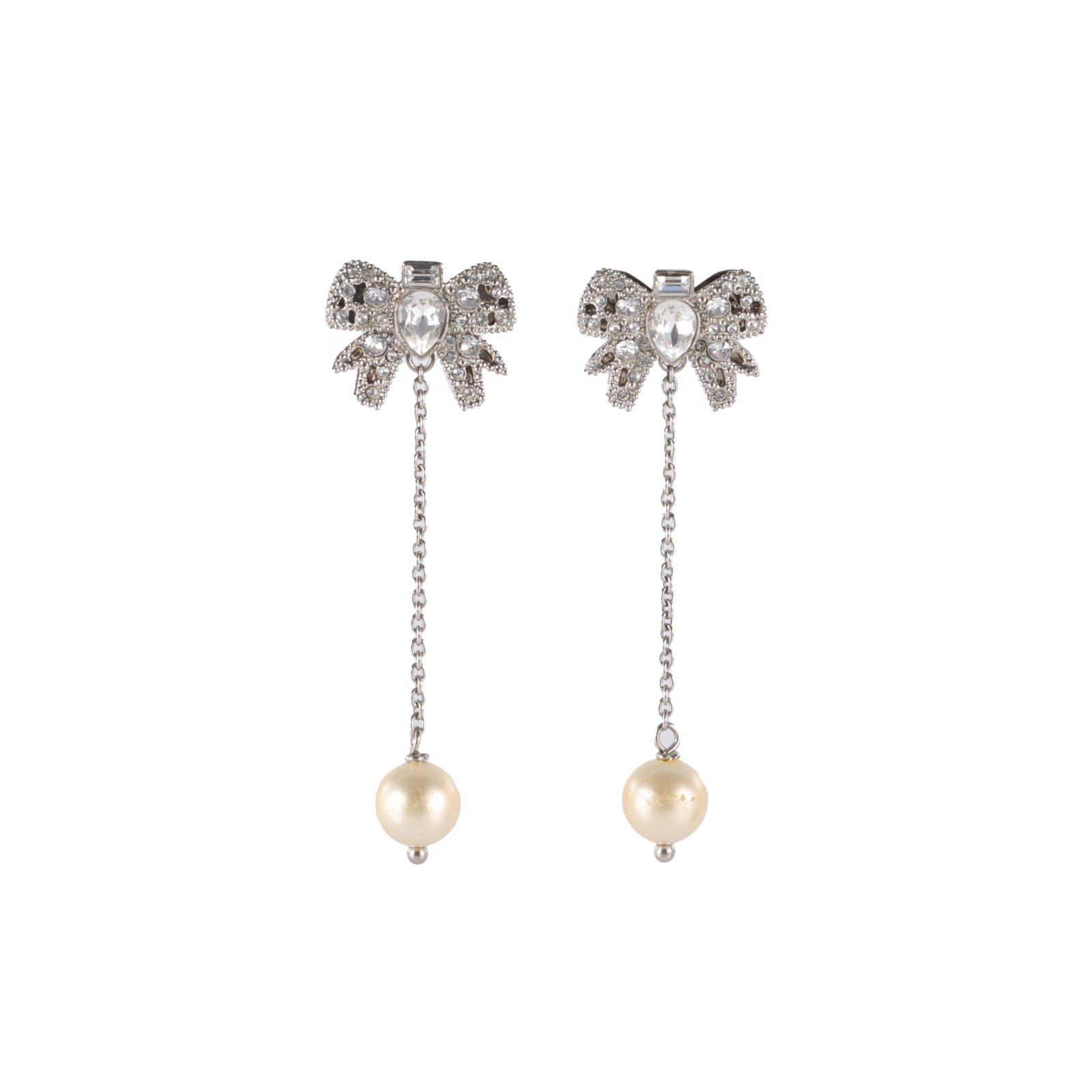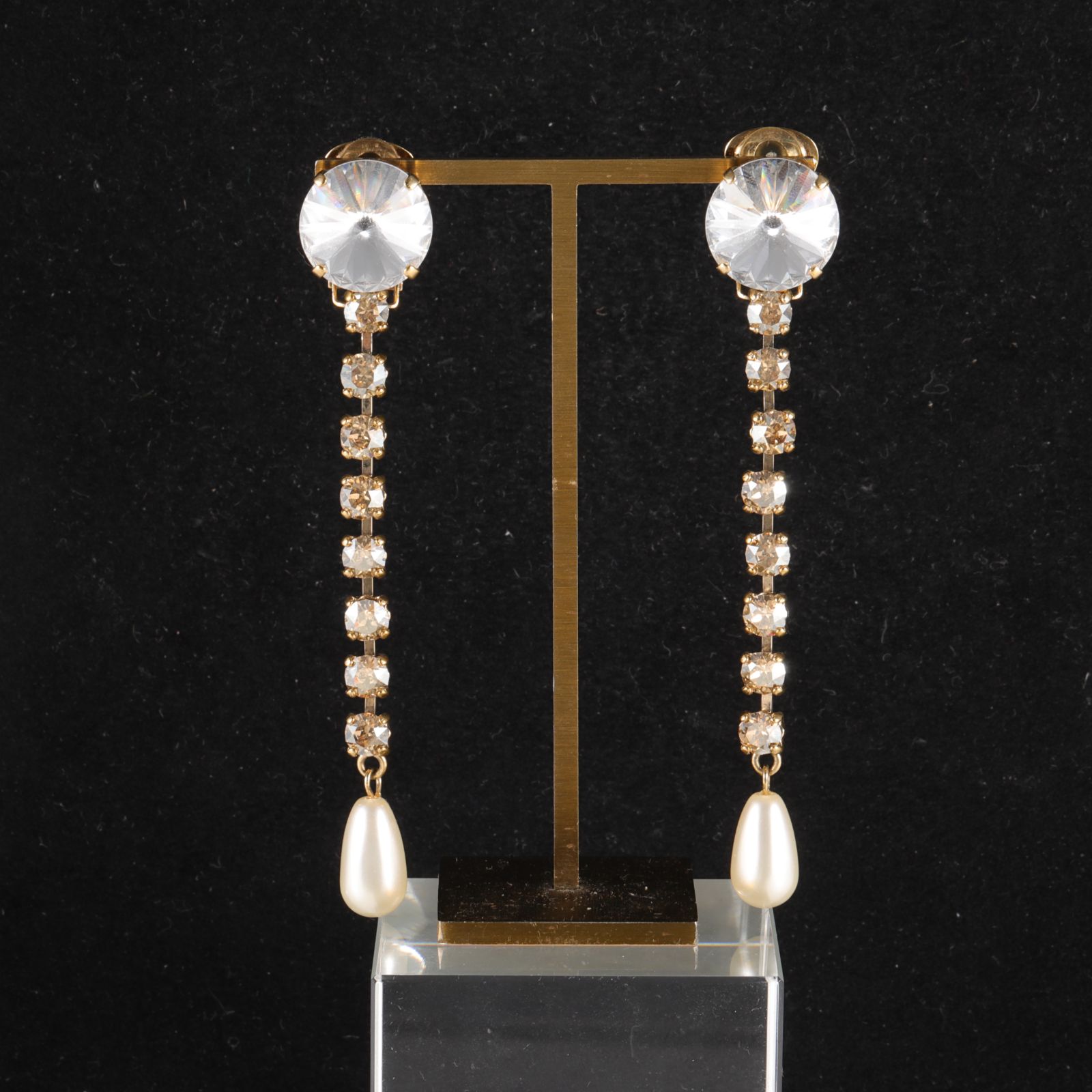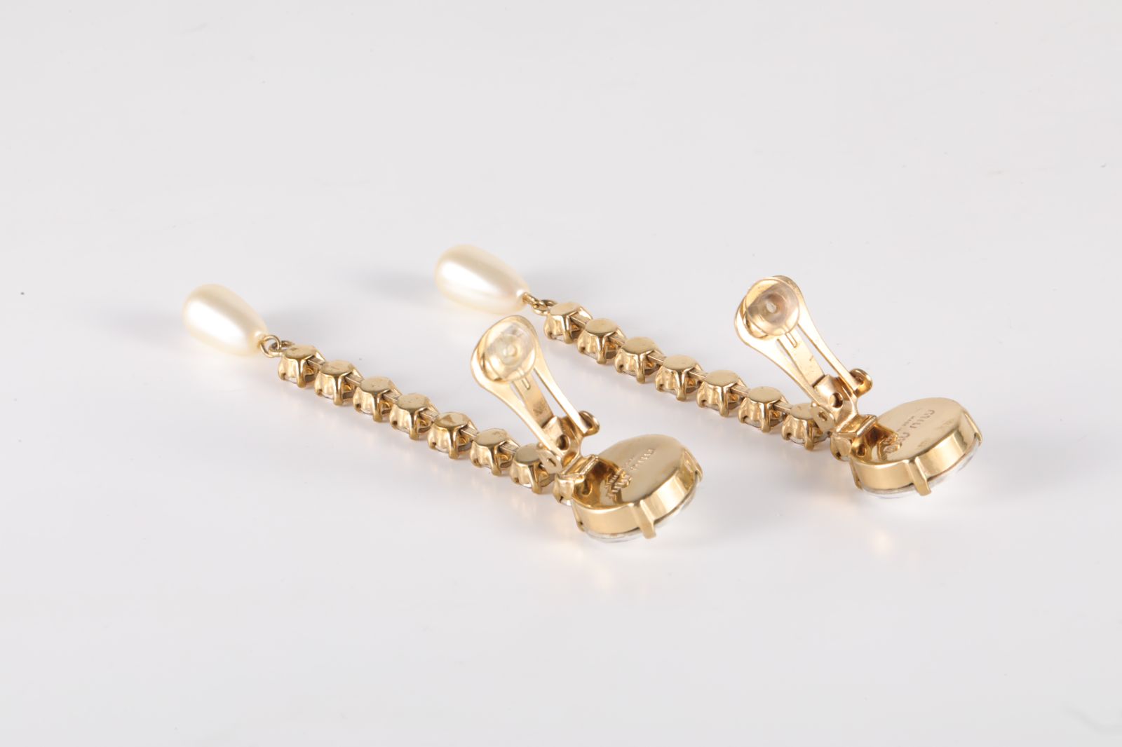 MIUMIU Rhinestone Tassel Clip-on Earrings Alloy