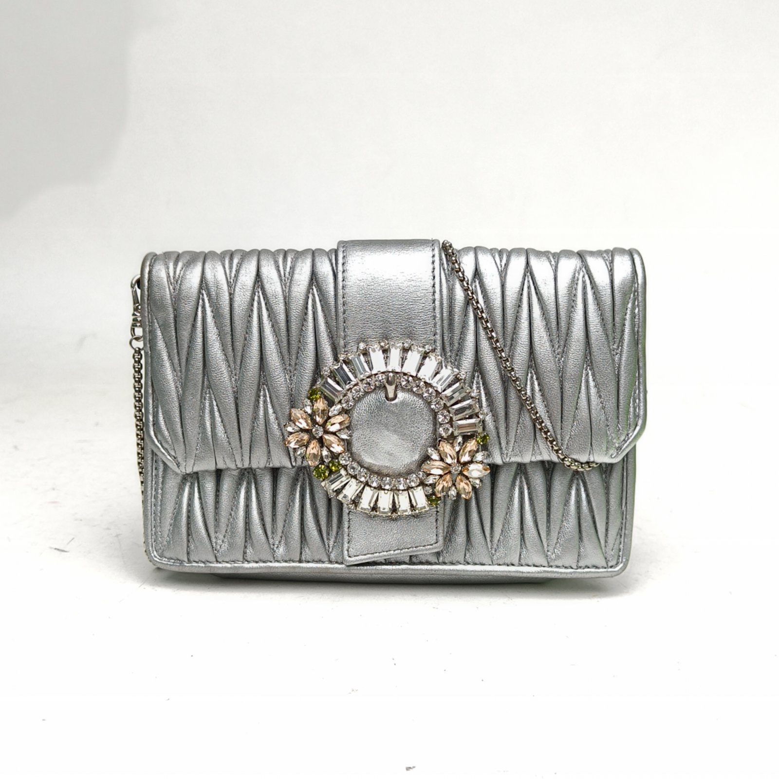 MIUMIU Silver Leather S Sunflower Rhinestone-Embellished Chain Bag