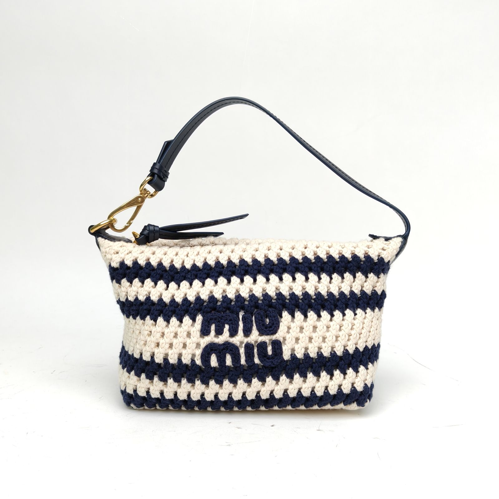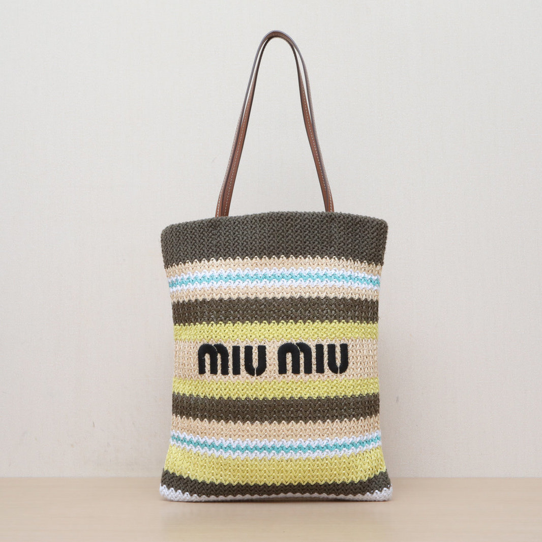 MIUMIU Color Block Knit 25SS Striped Woven Bag Lunch Box Bag