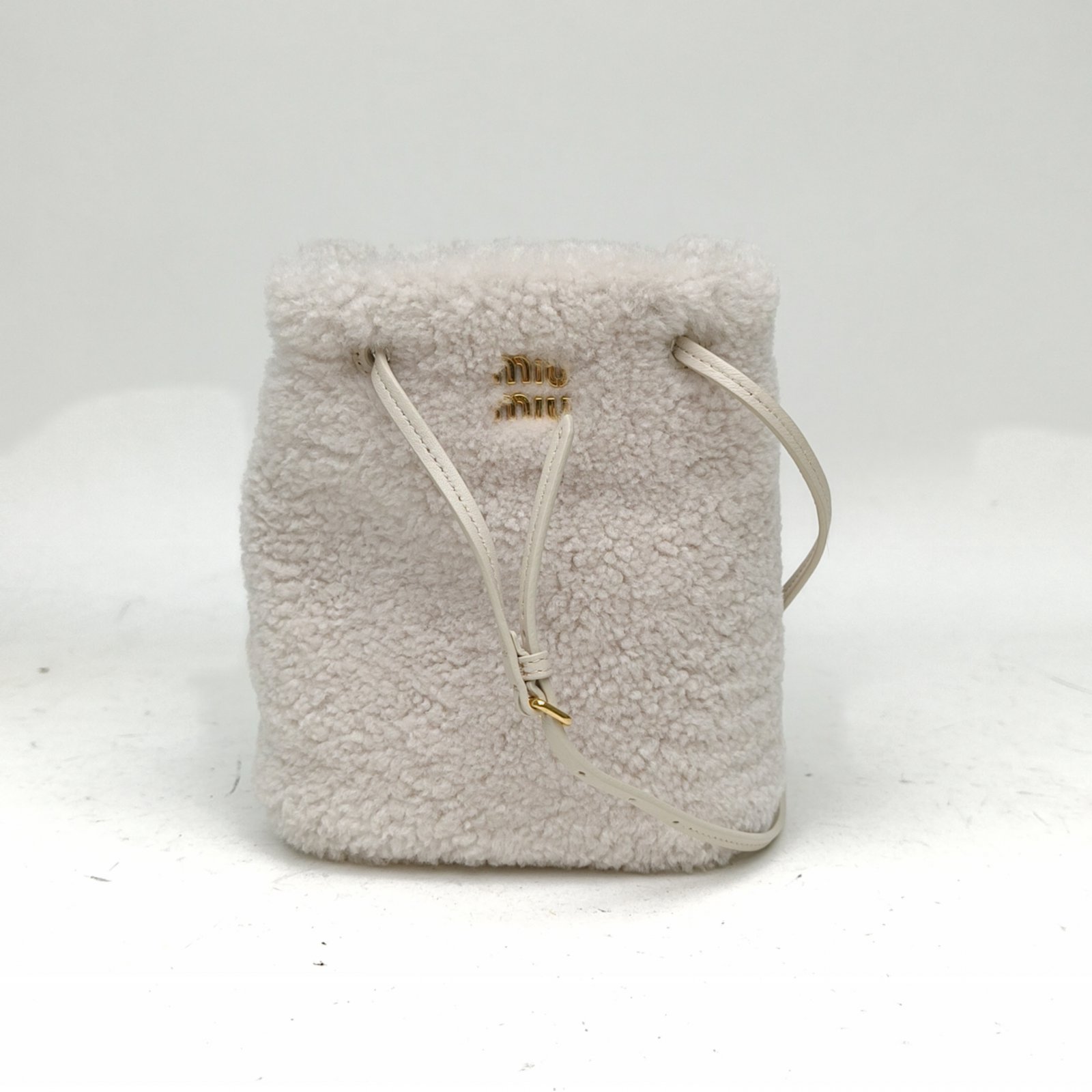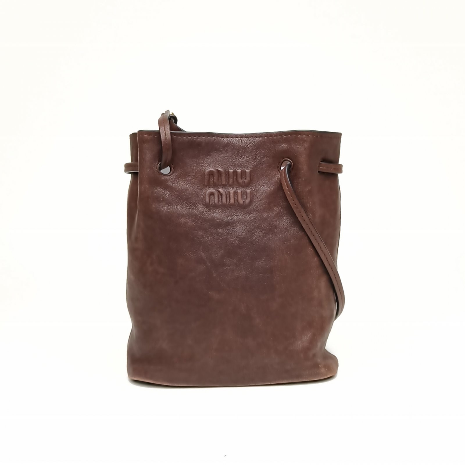 MIUMIU Coffee Nappa Mini Drawstring Bucket Bag